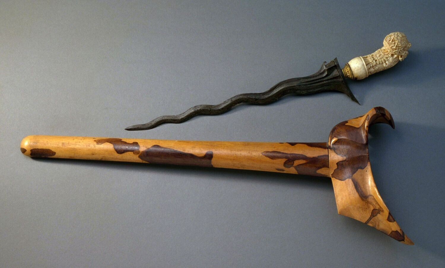 Gegolfde kris met ivoren greep en houten schede