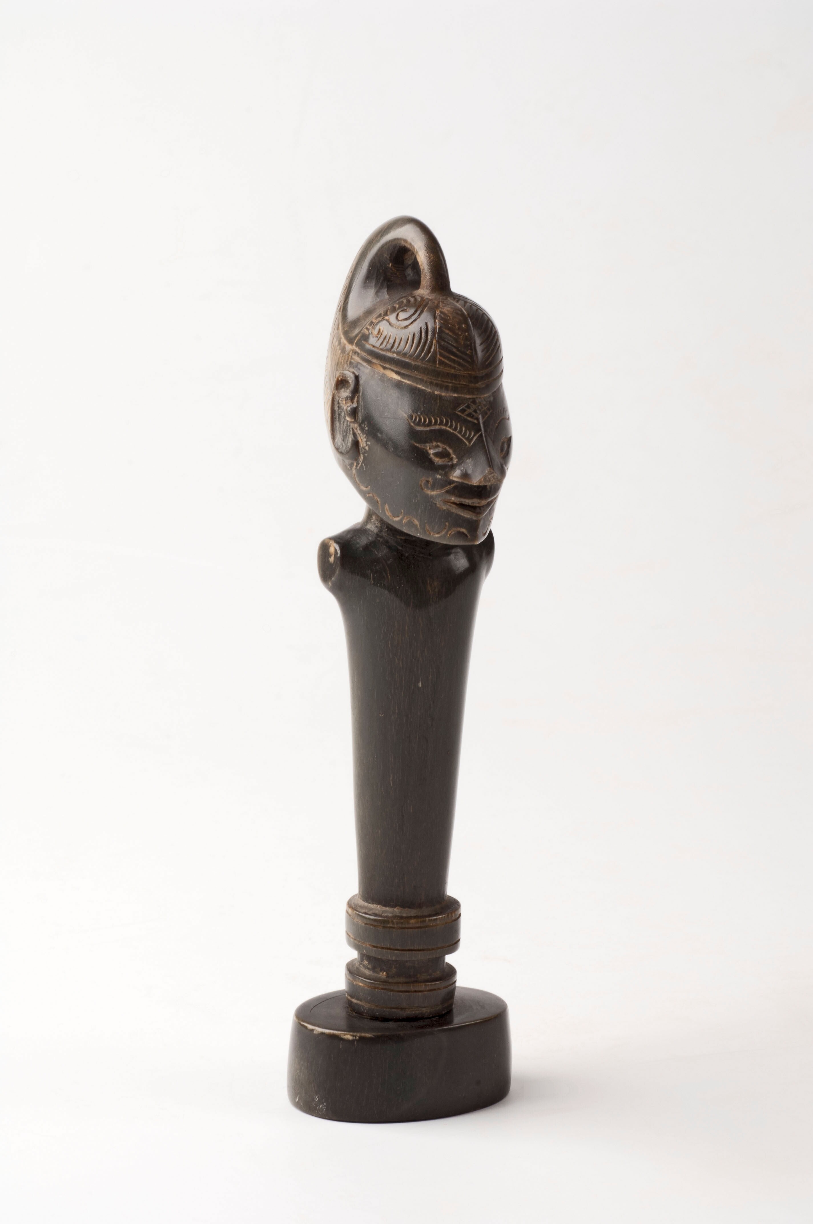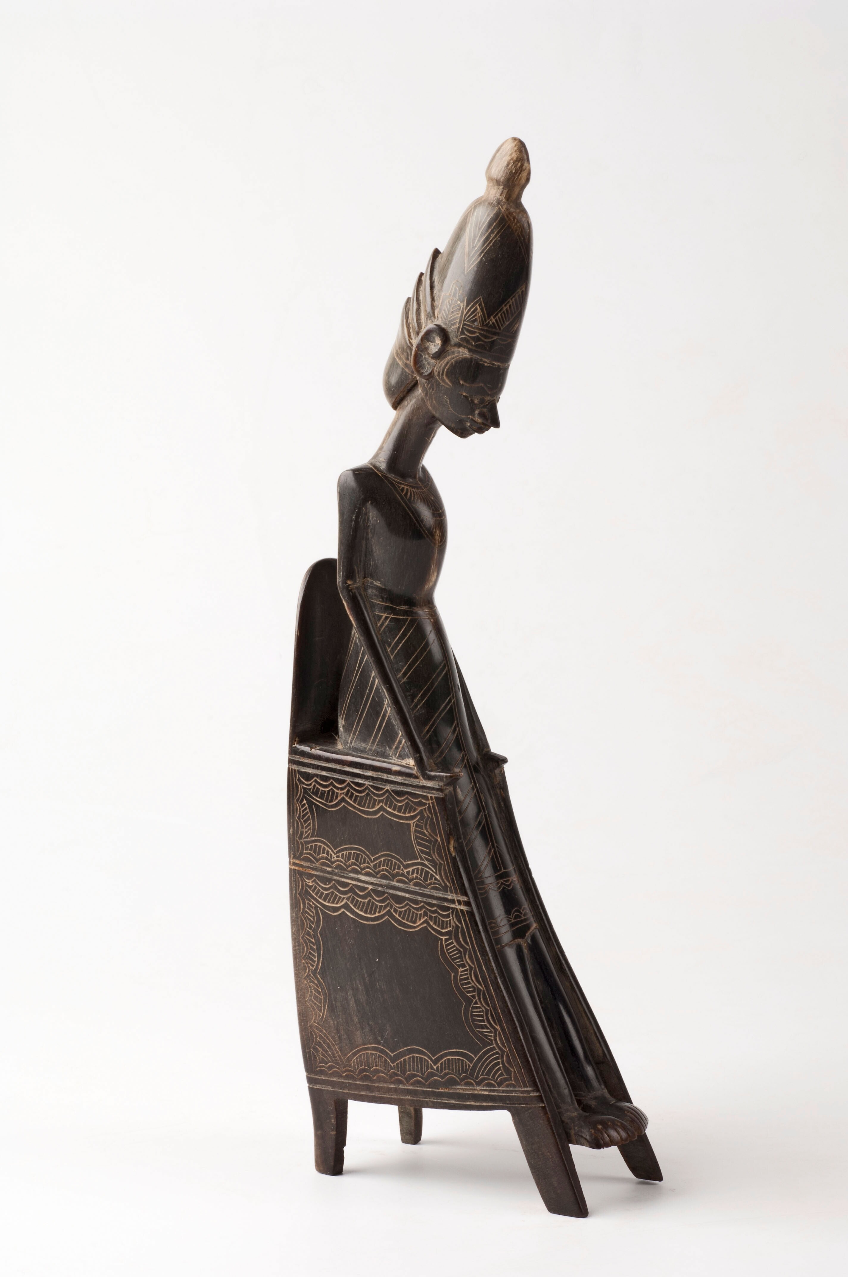 Zwart hoornen beeldje een in staatdiegewaad geklede ...