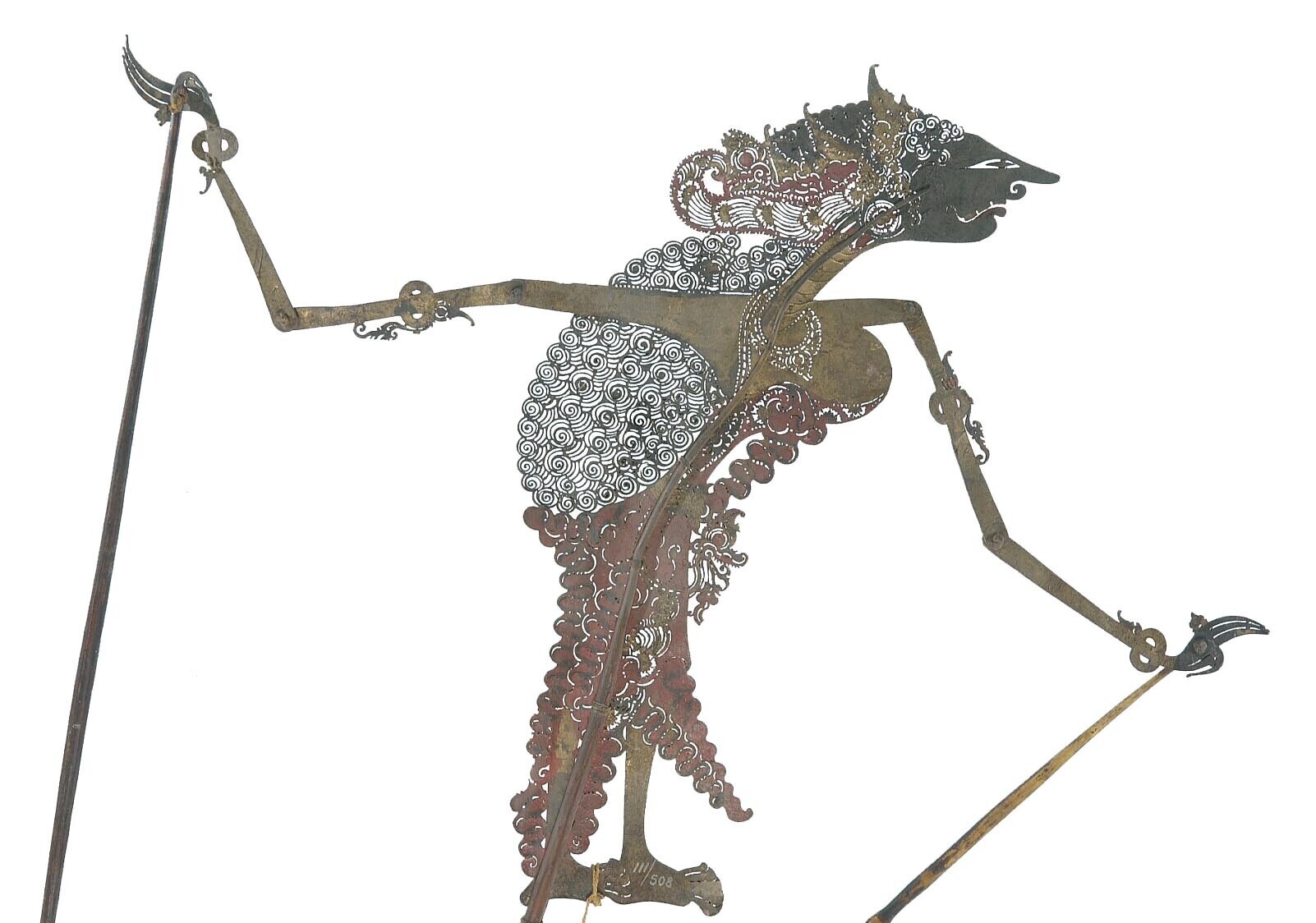 Beschilderde lederen wajangpop voorstellende Dewi Wa...