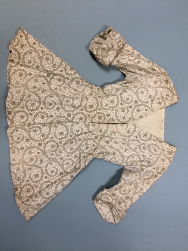 Wit katoenen jak met blauwprintje breasted sluiting,...