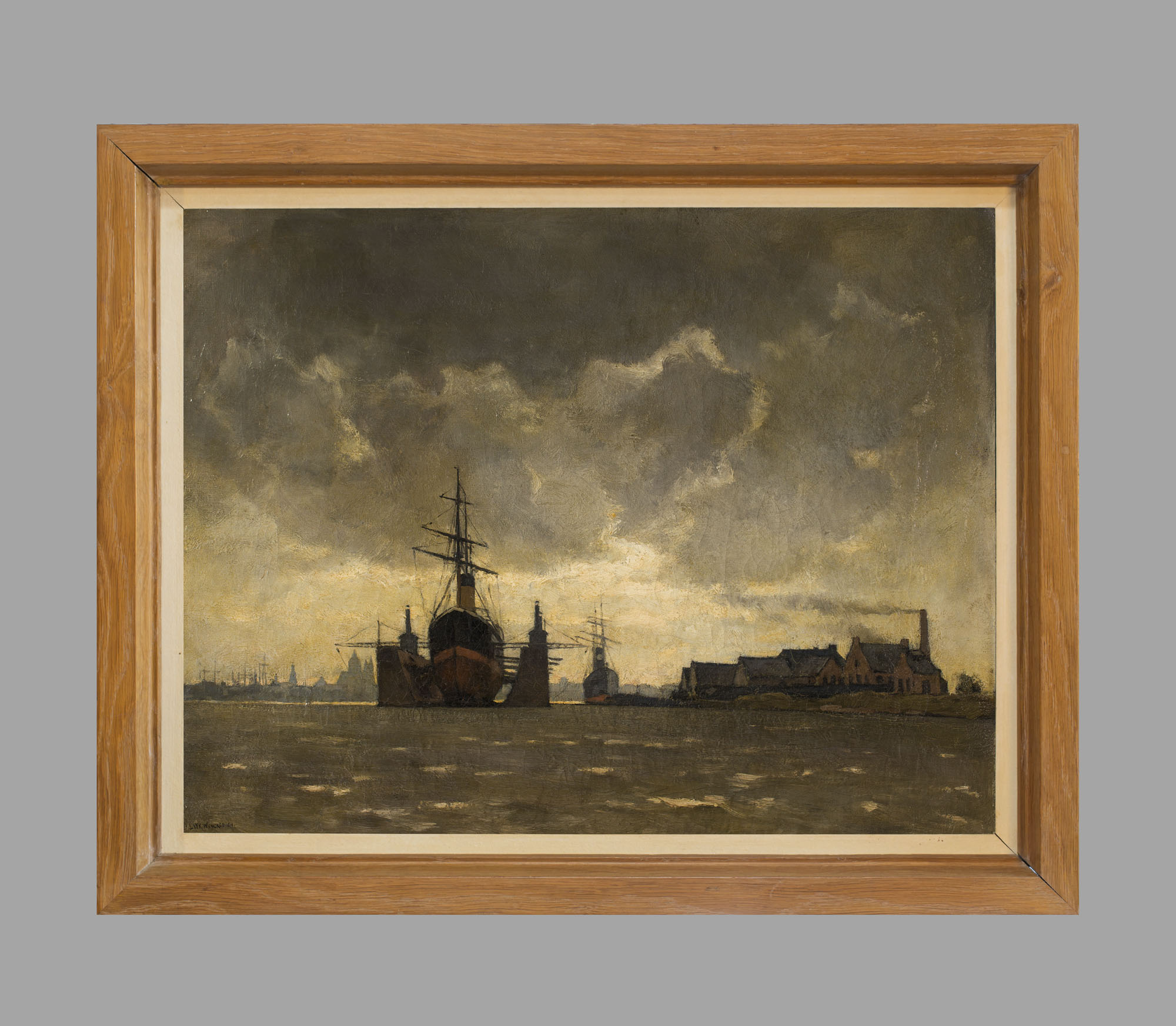 Gezicht van de stad Amsterdam aan het Y. te zien. = ...