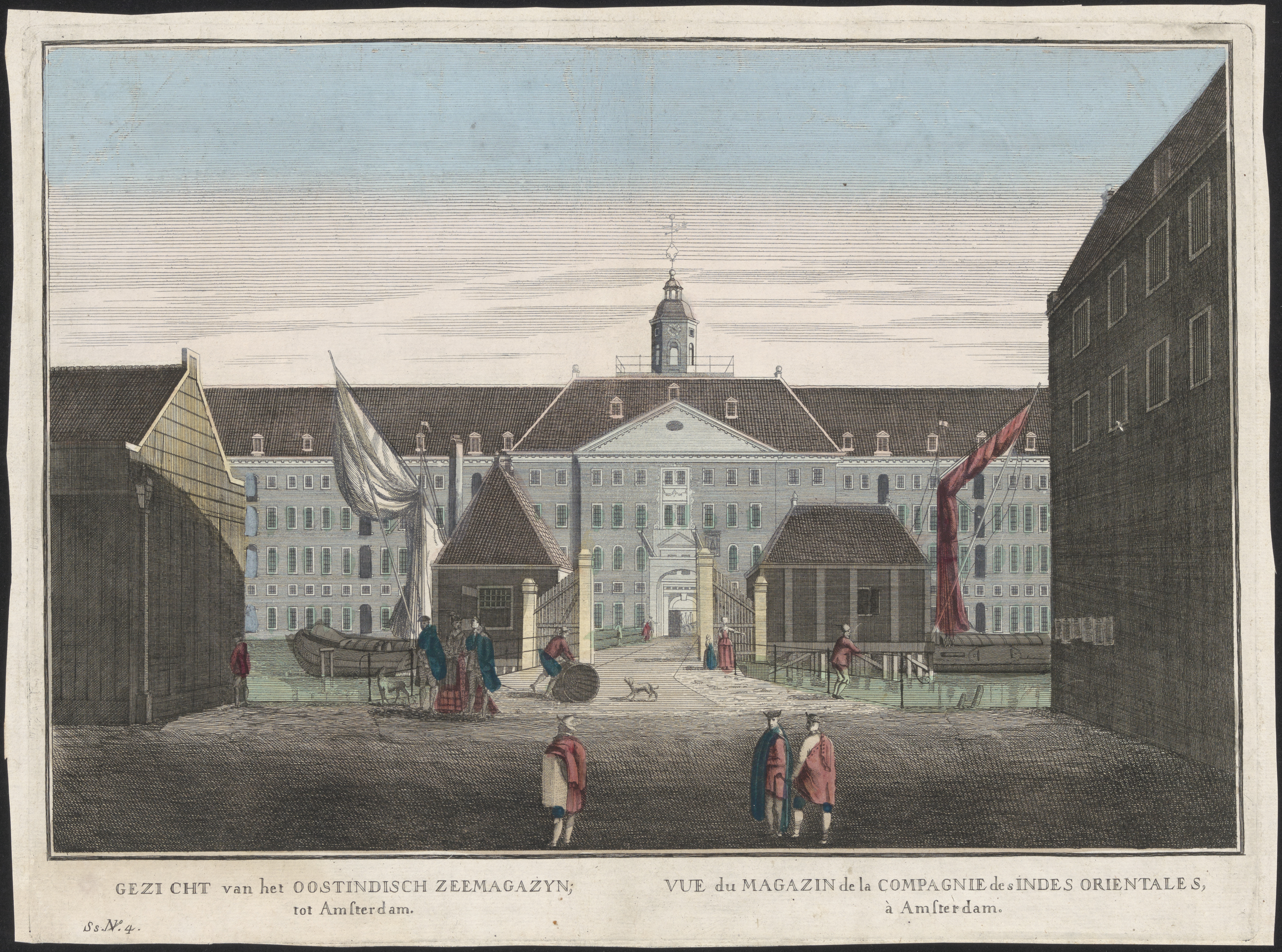 Gezicht van het Oostindisch zeemagazyn tot Amsterdam...