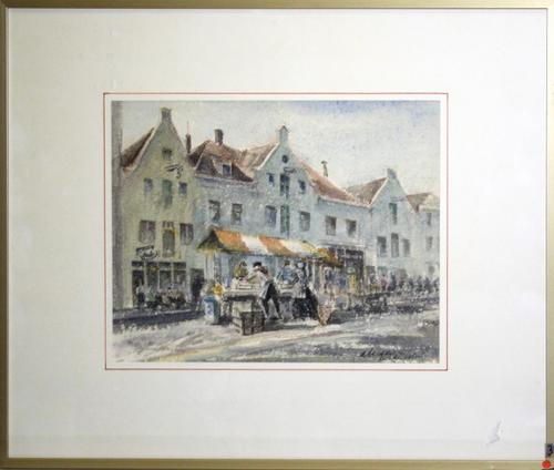 Aquarel. Vis- Haringkraam op de Westhavenkade te Vla...