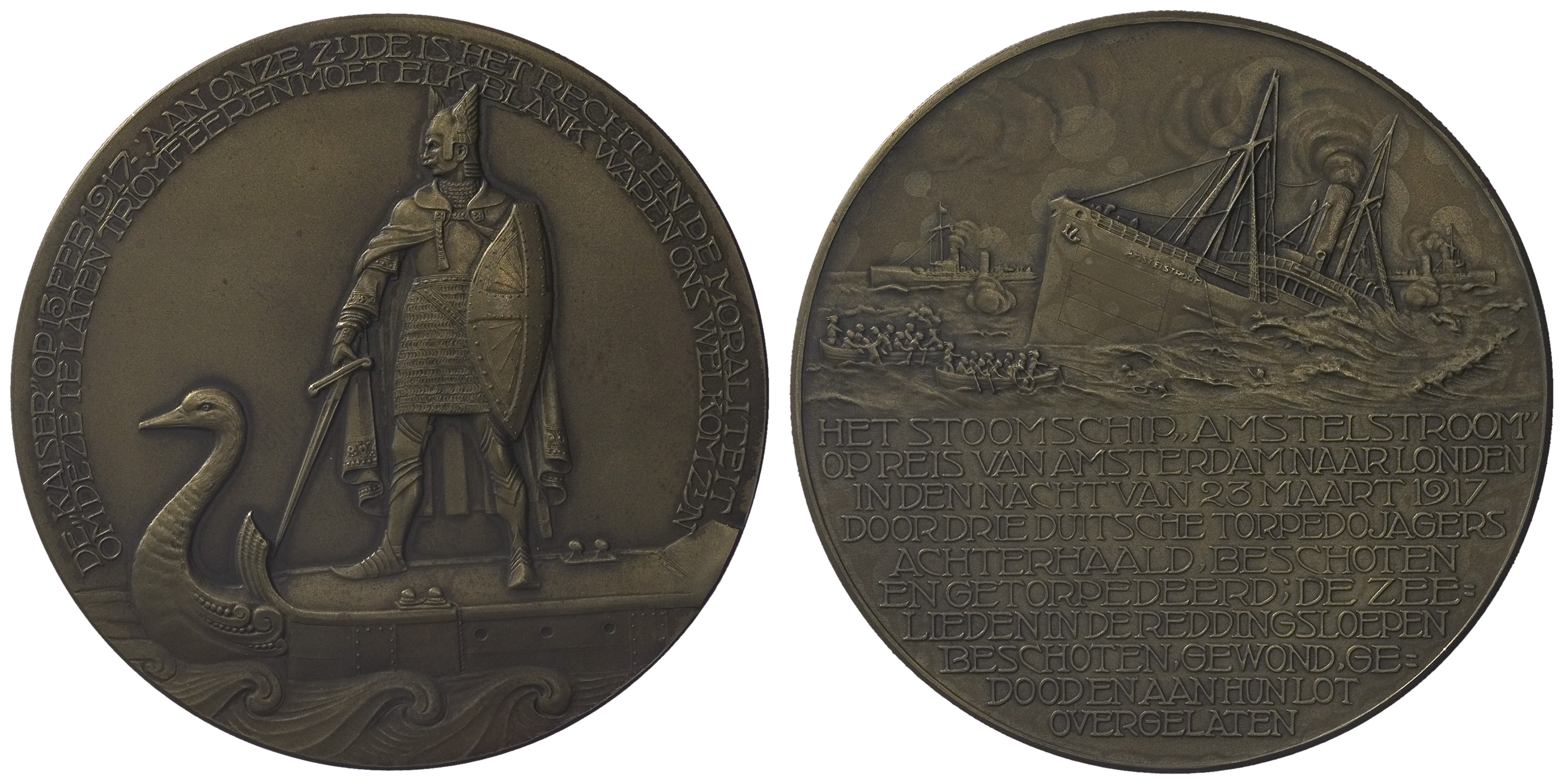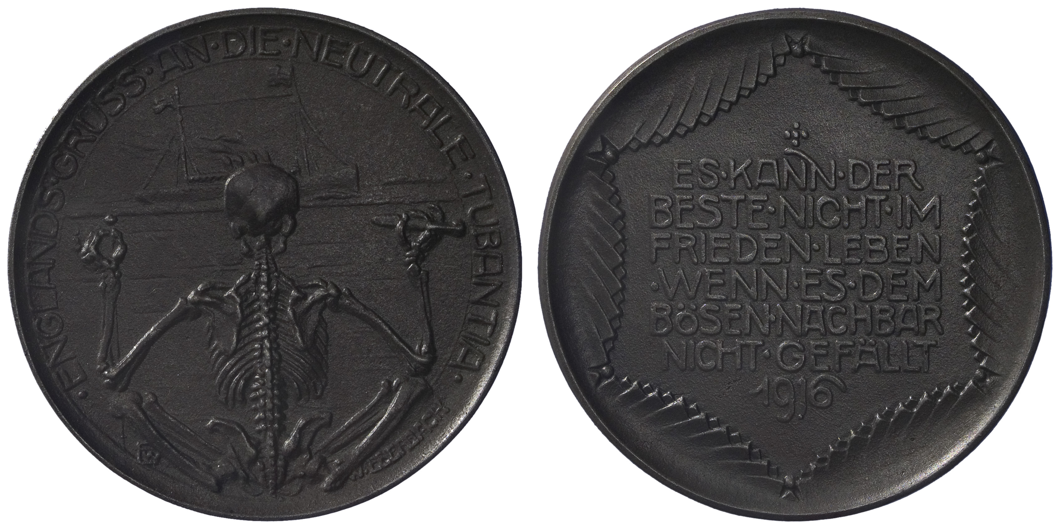 Ijzeren spotpenning op het torpederen van de s.s. Tu...