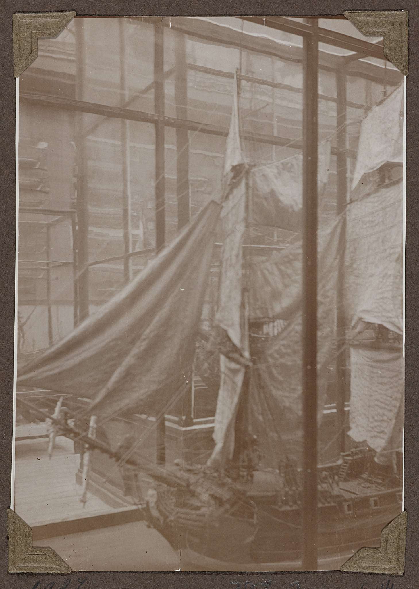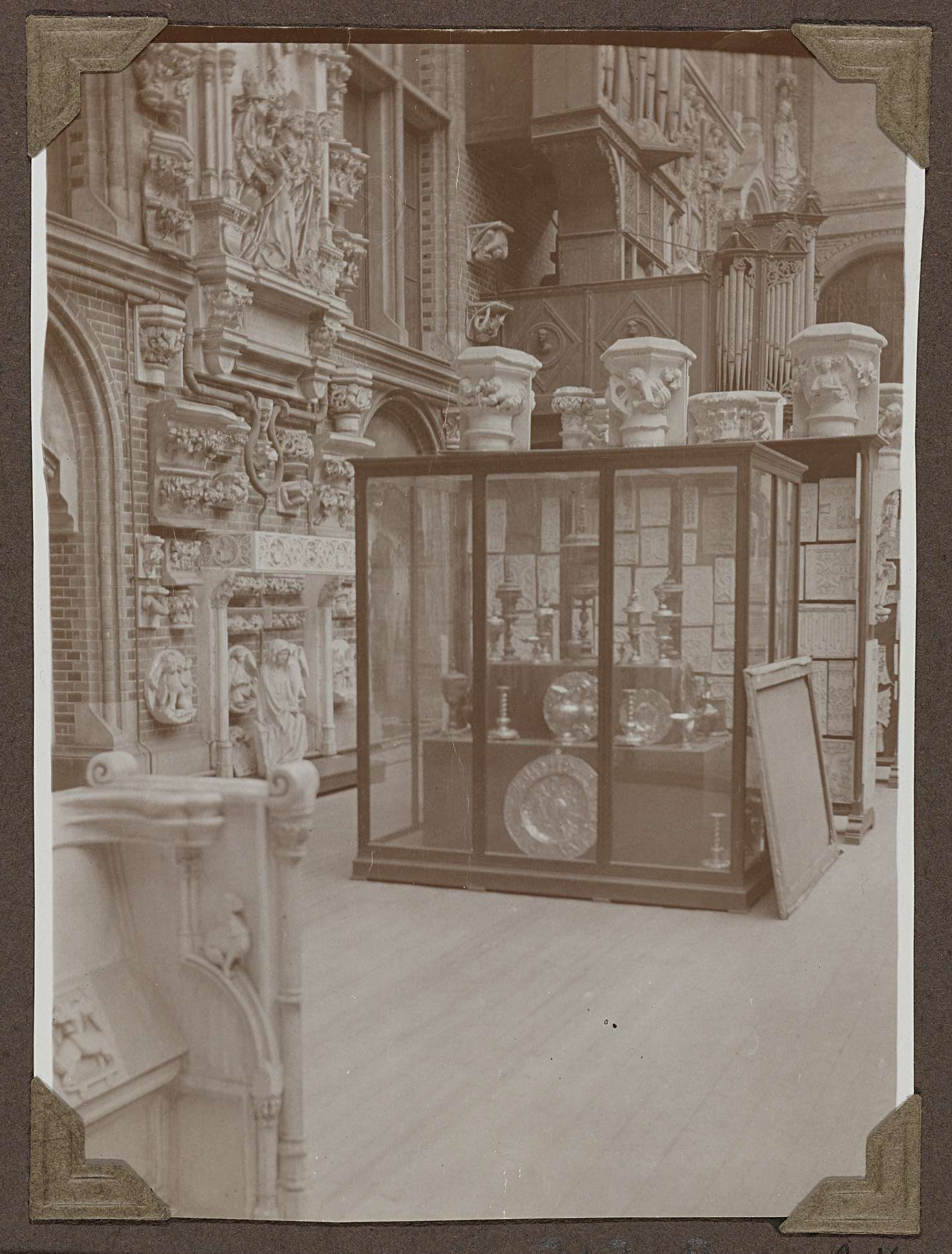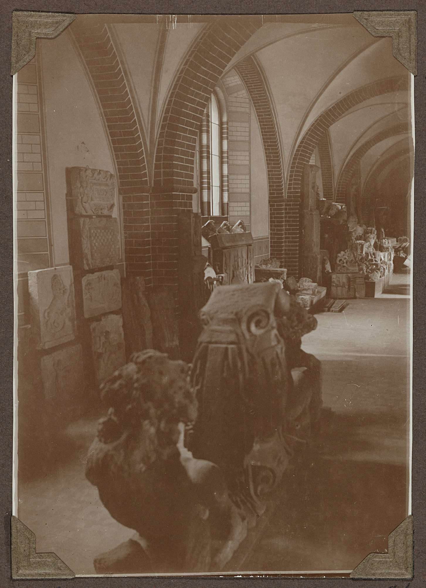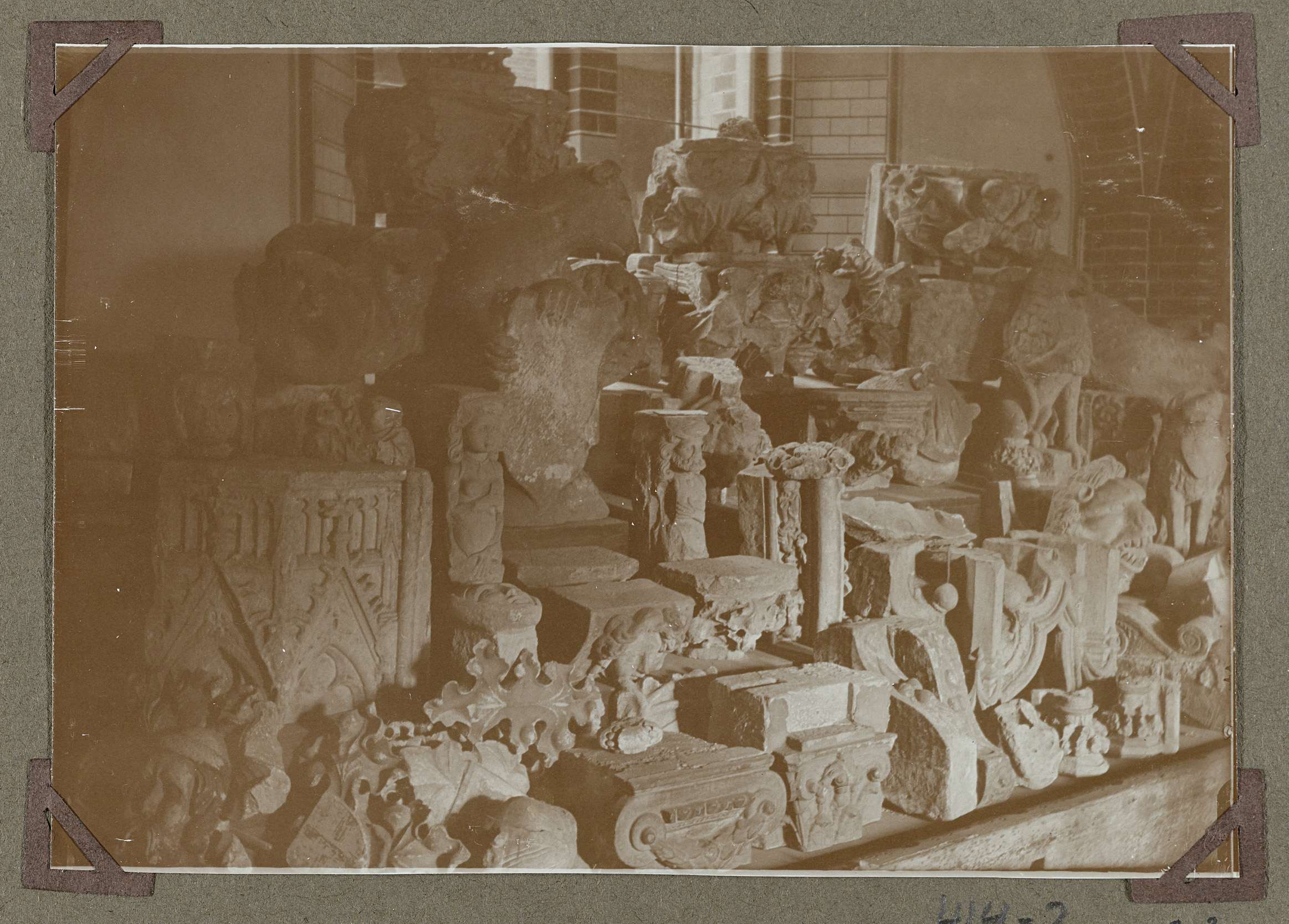 Opstelling van bouwfragmenten in het souterrain in 1929