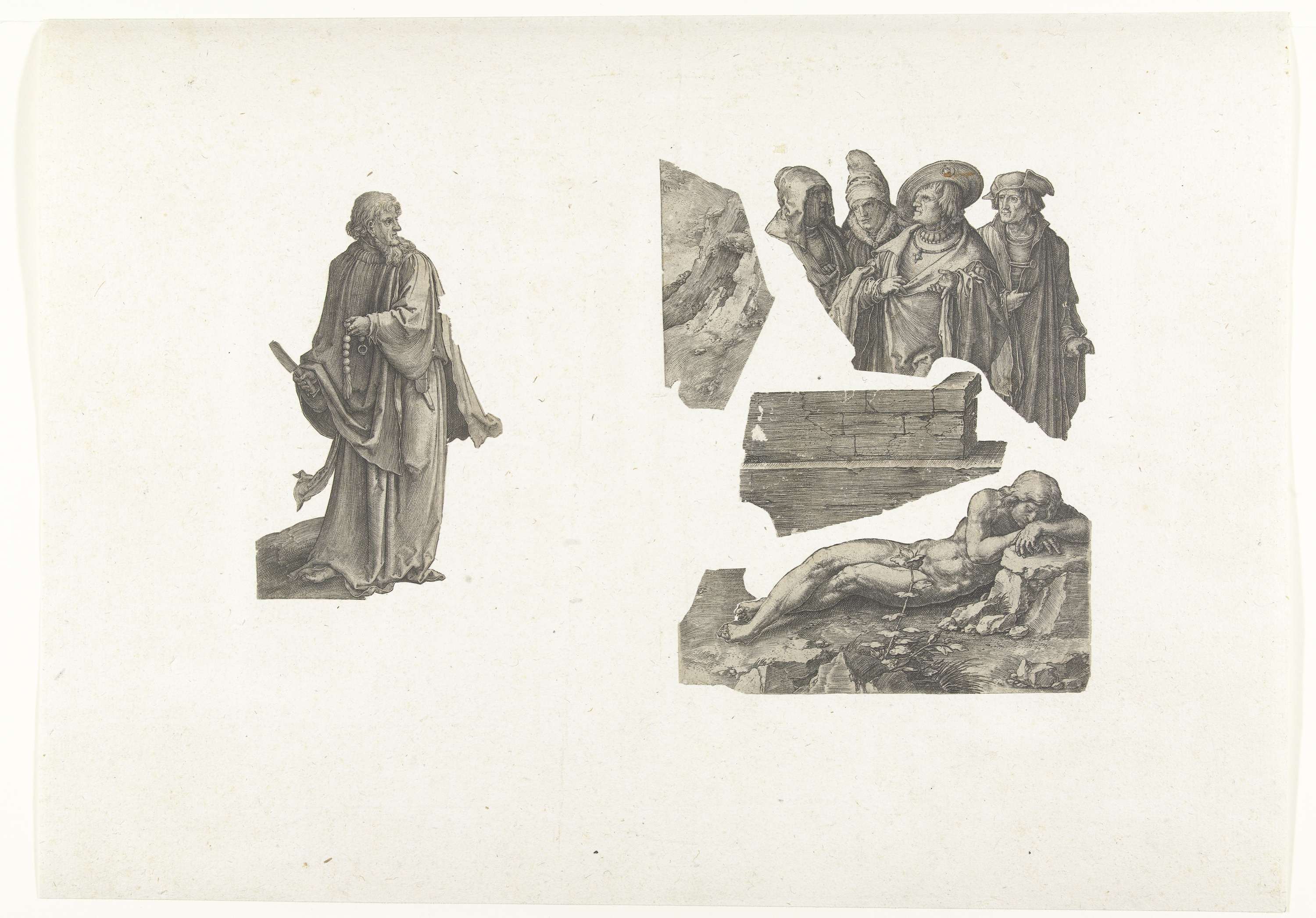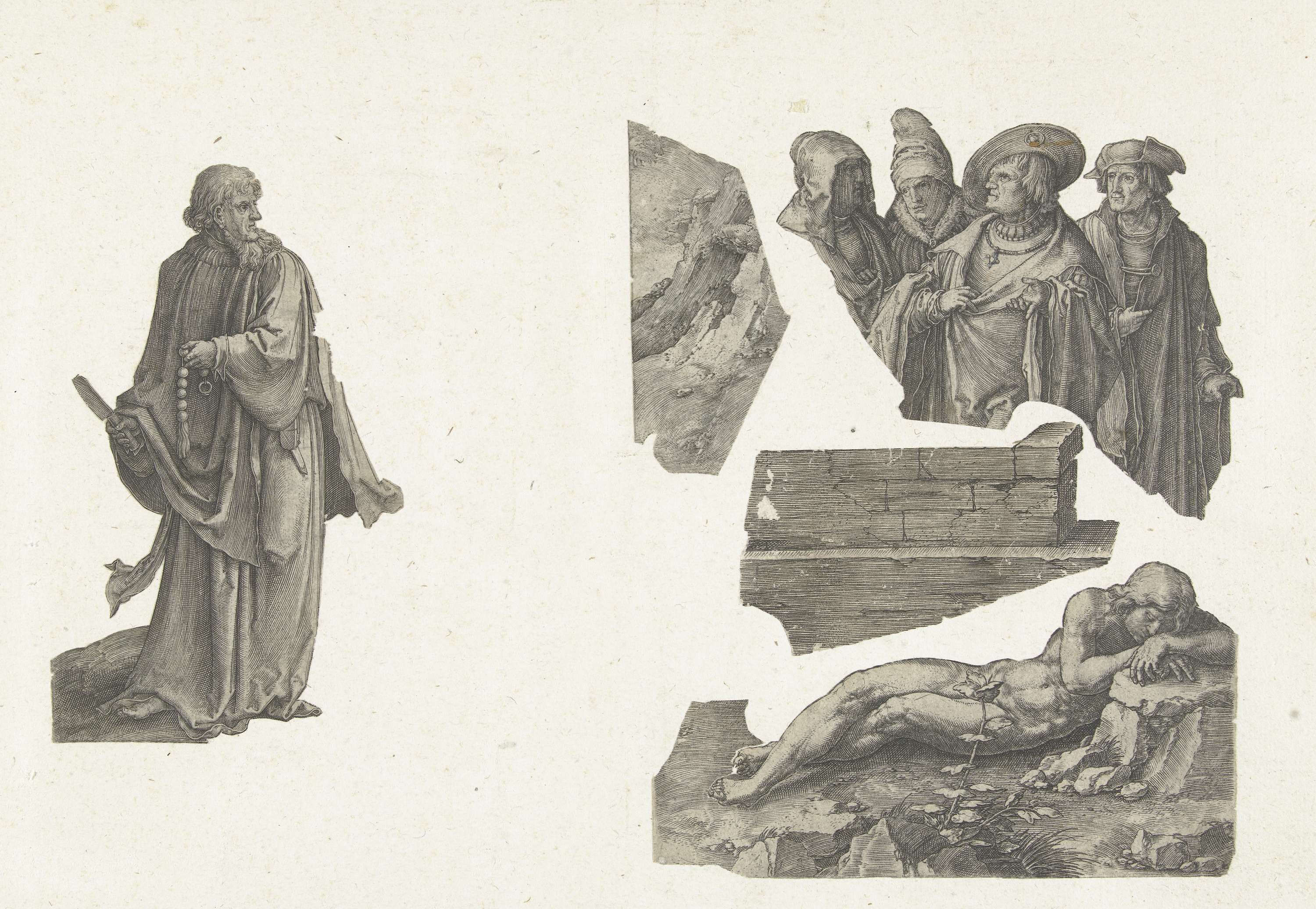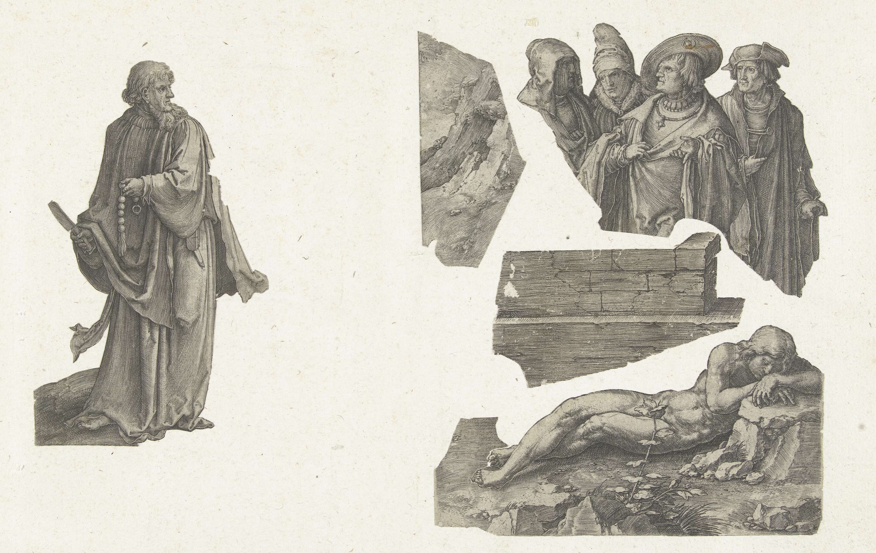 Vijf fragmenten van prenten