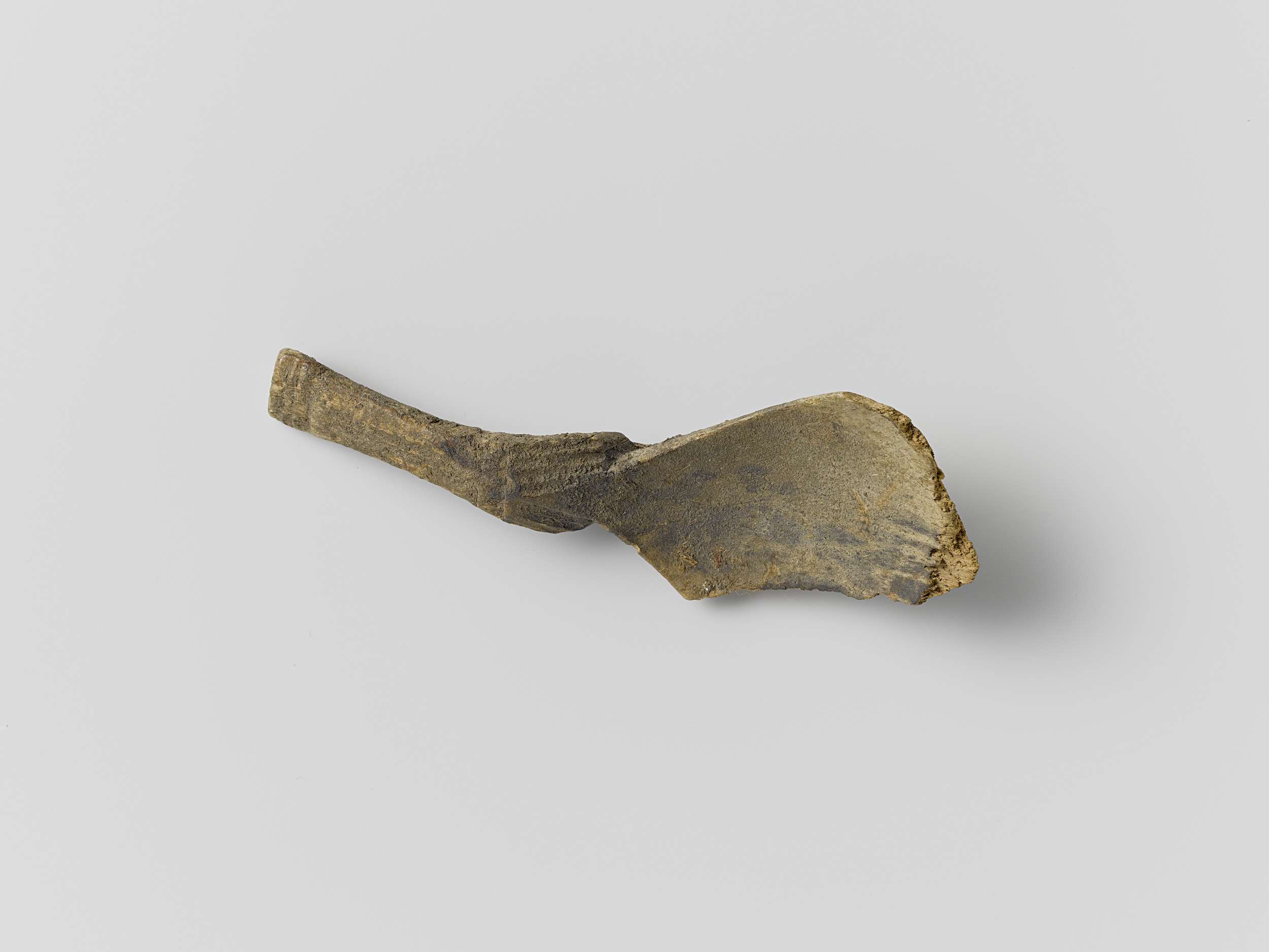 Fragment van hout, in de vorm van een pijp en versie...