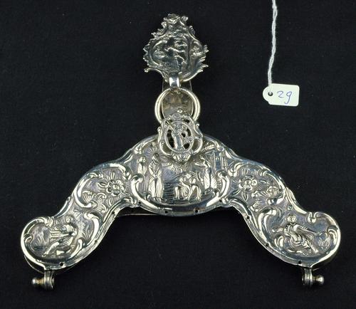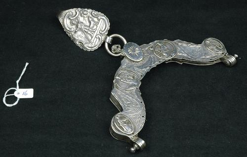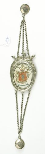 Chatelaine met schaar, speldenkussen en naaldenkoker...