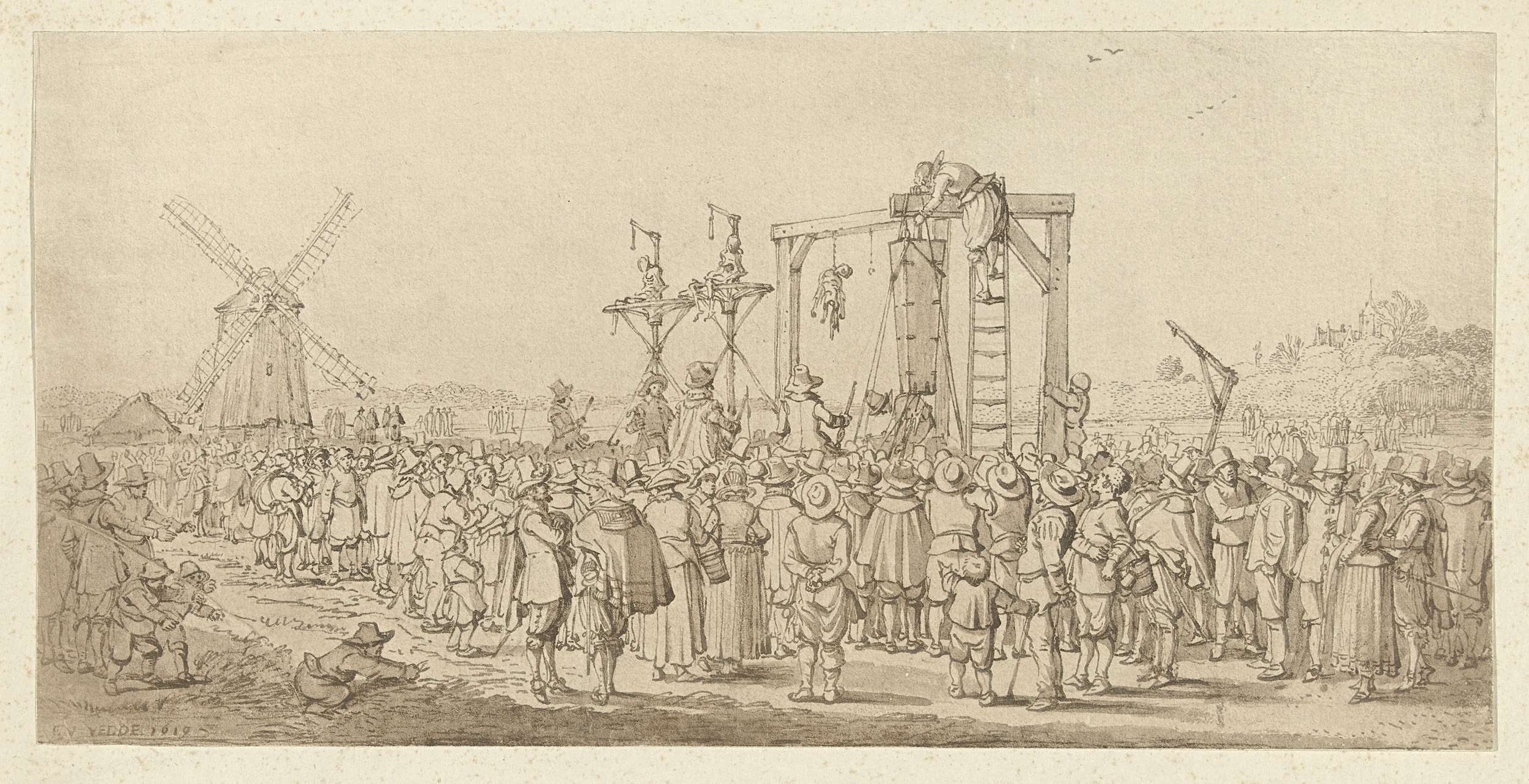 De doodskist van Ledenberg wordt aan de galg gehange...