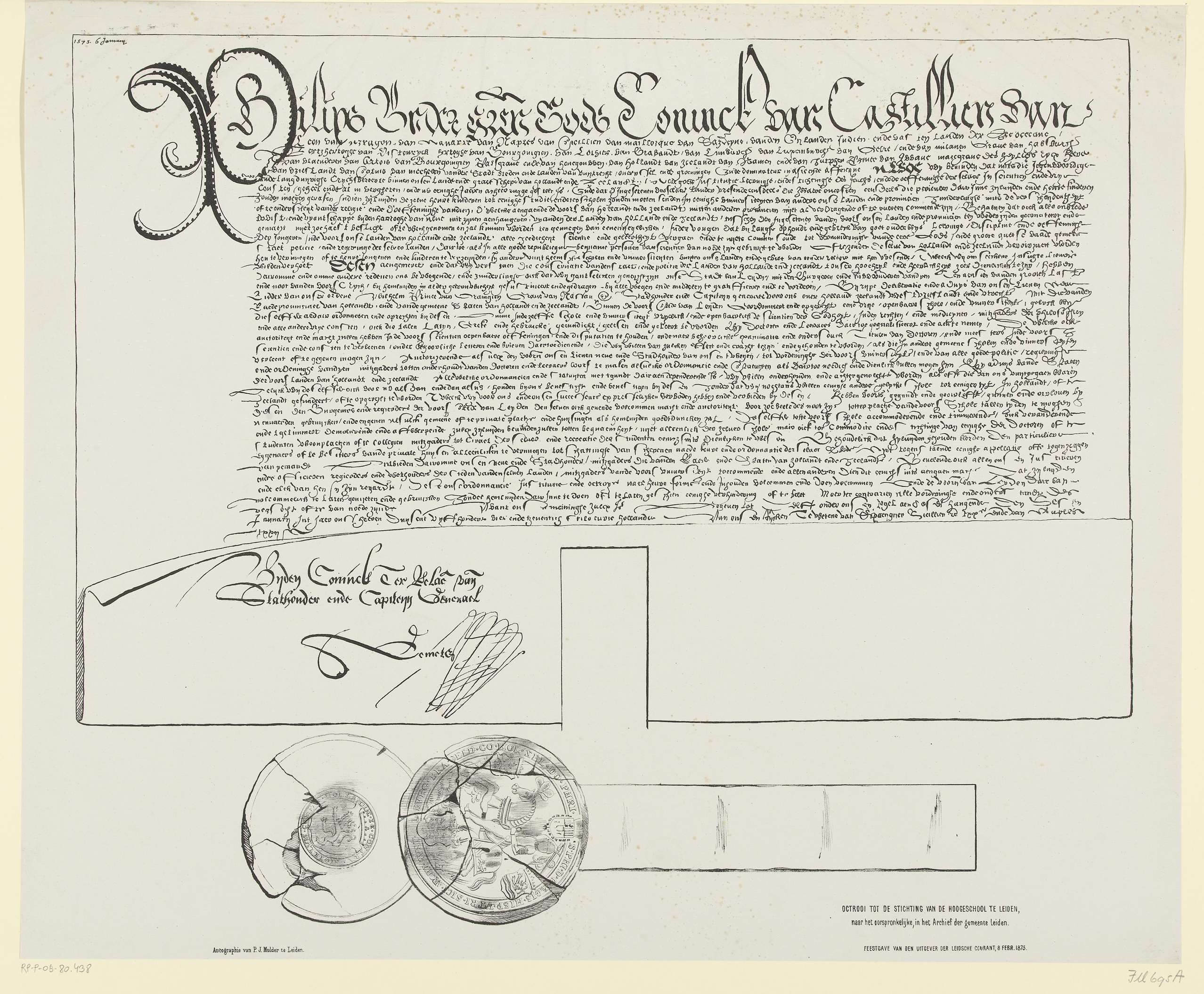 Facsimile van het octrooi tot de stichting van de Un...