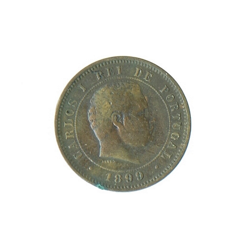 Koperen munt met kop van Koning Carlos I