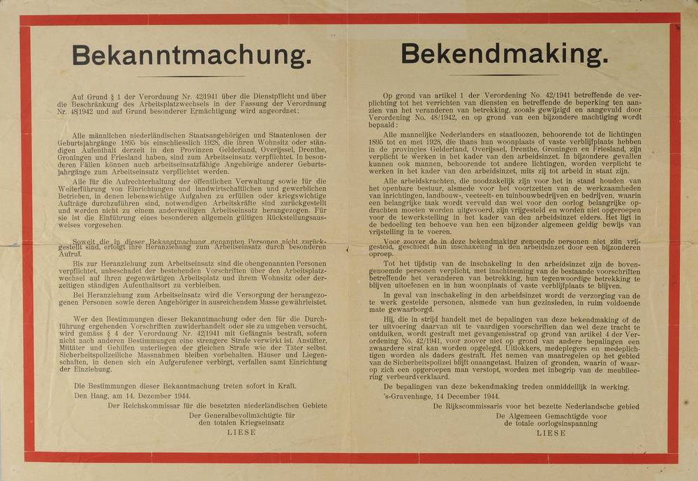 Kopie van een Affiche "Waarschuwing, De Burgemeester...