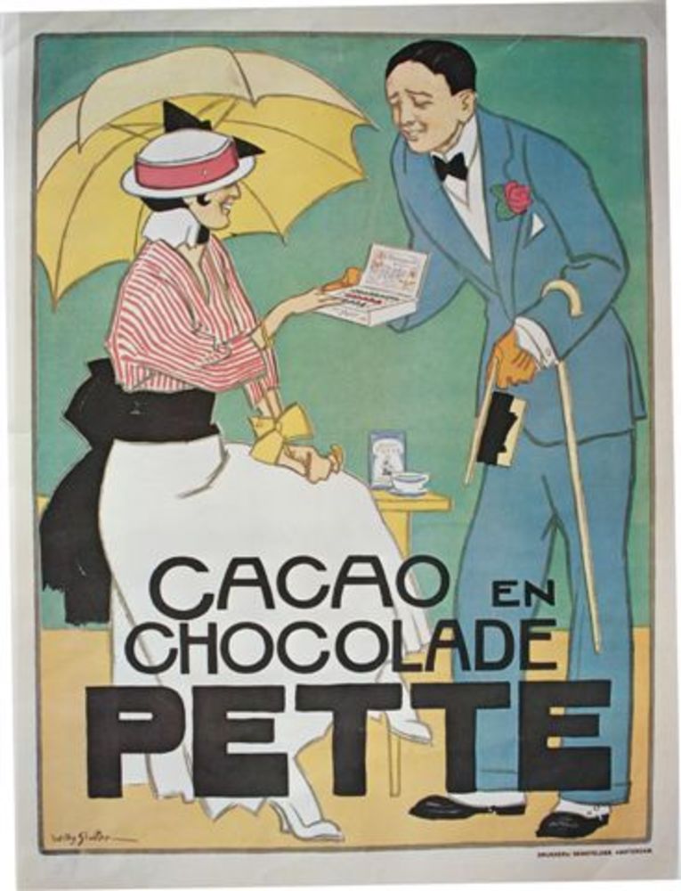 Affiche cacao en chocolade Pette. Kleurendruk: Senne...