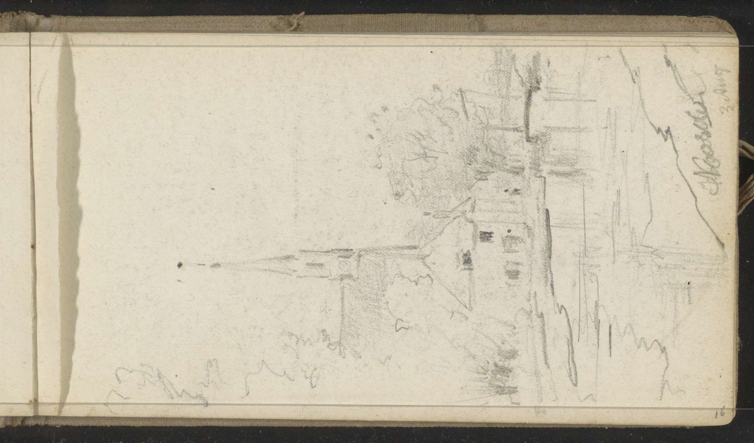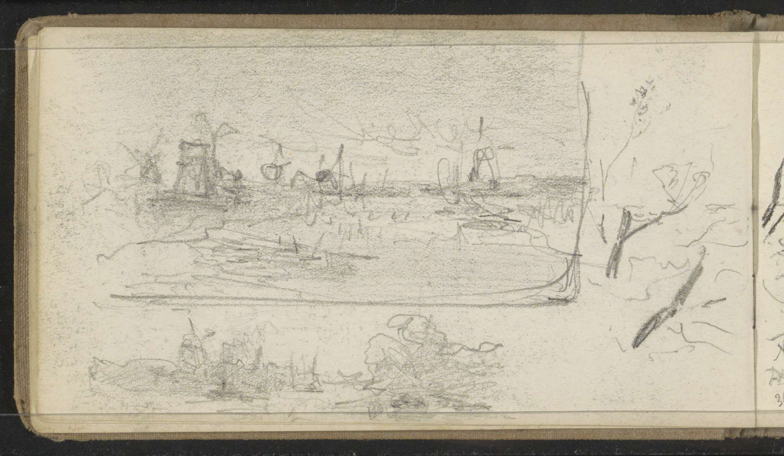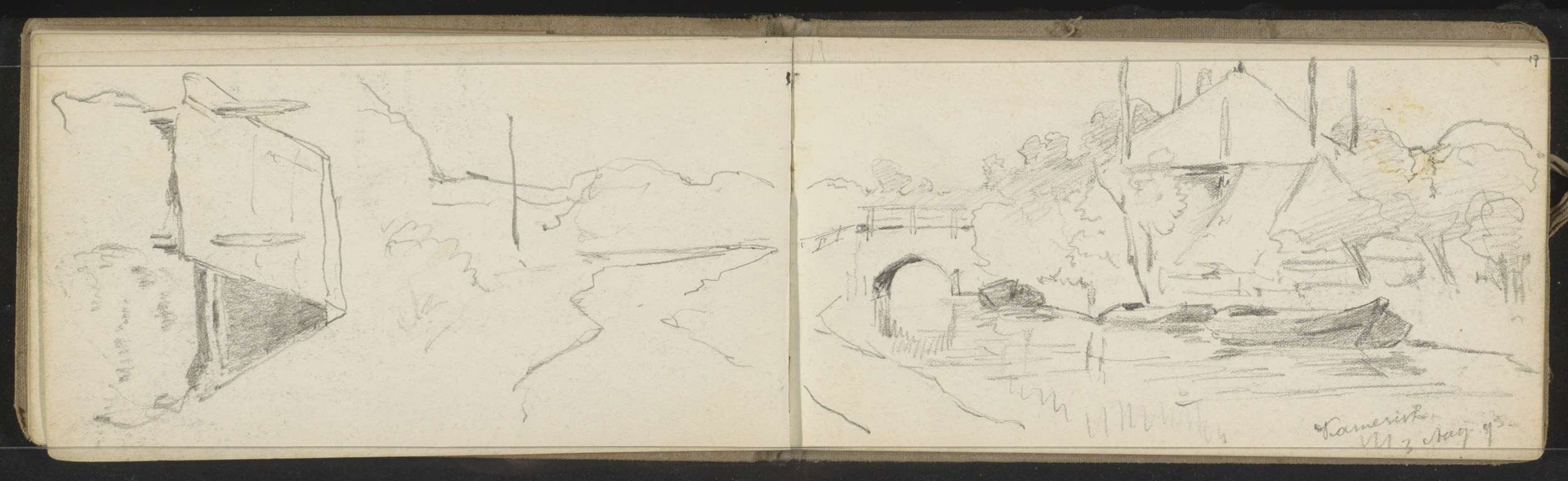 Molen en huizen aan de Vecht, een huis met een riete...