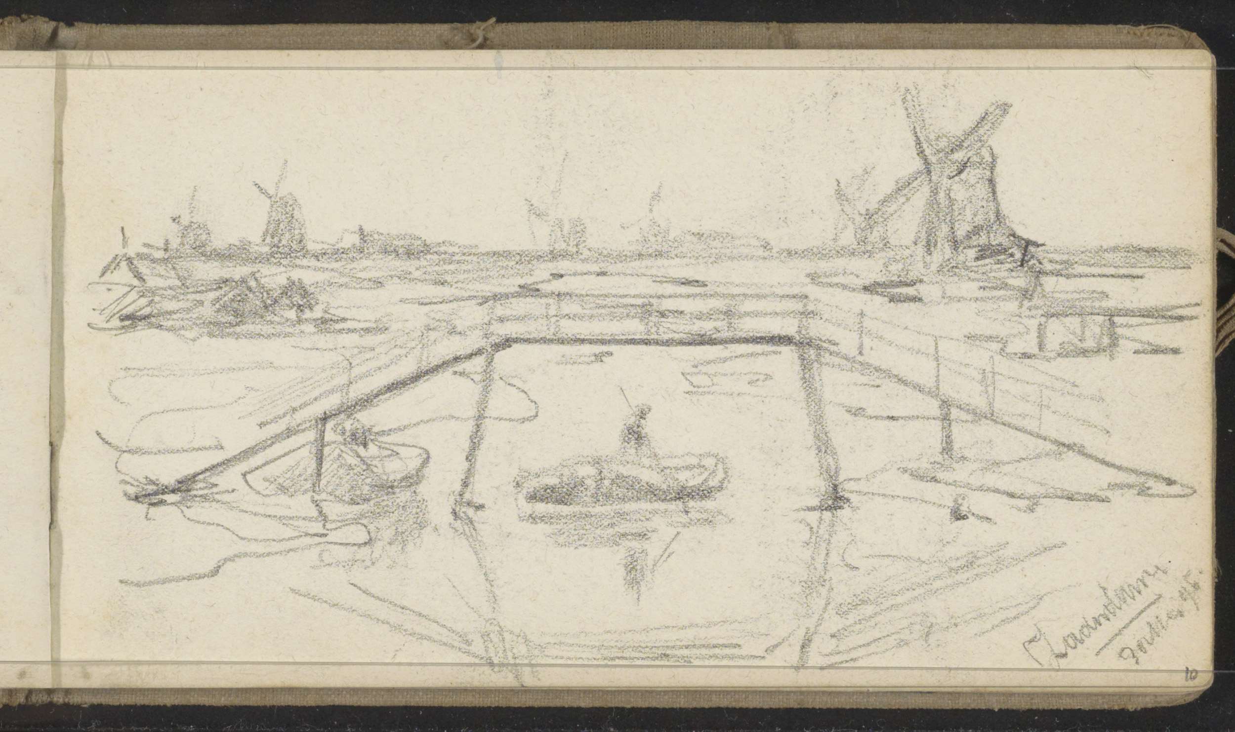 Hooischuur en een landschap met een vaart te Rijswijk