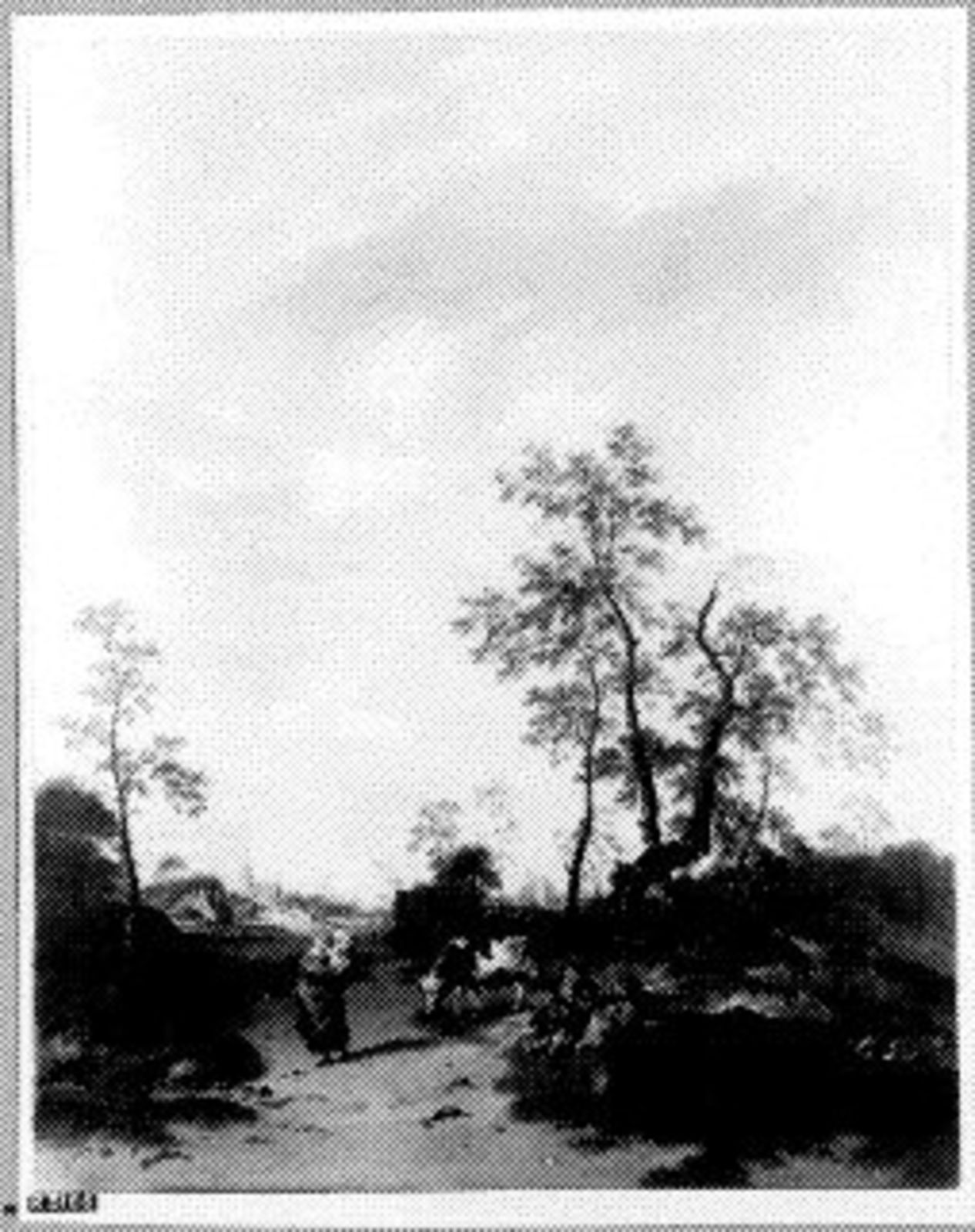 Landschap met twee wandelende figuren