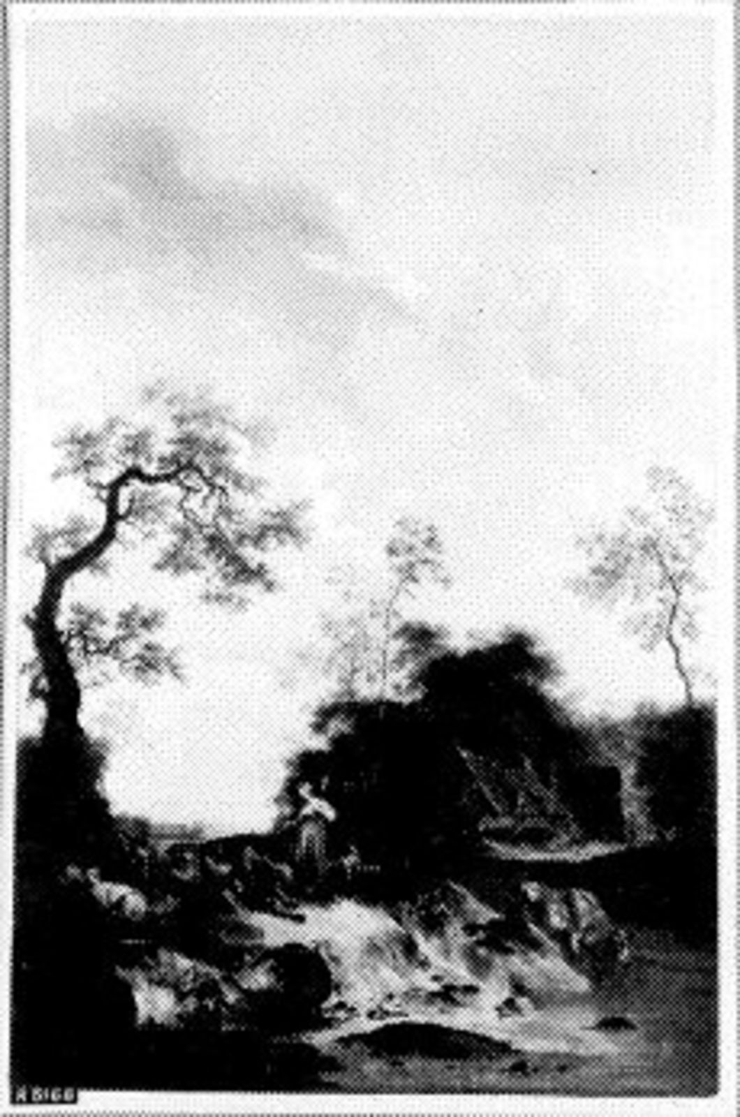 Landschap met figuur op bank