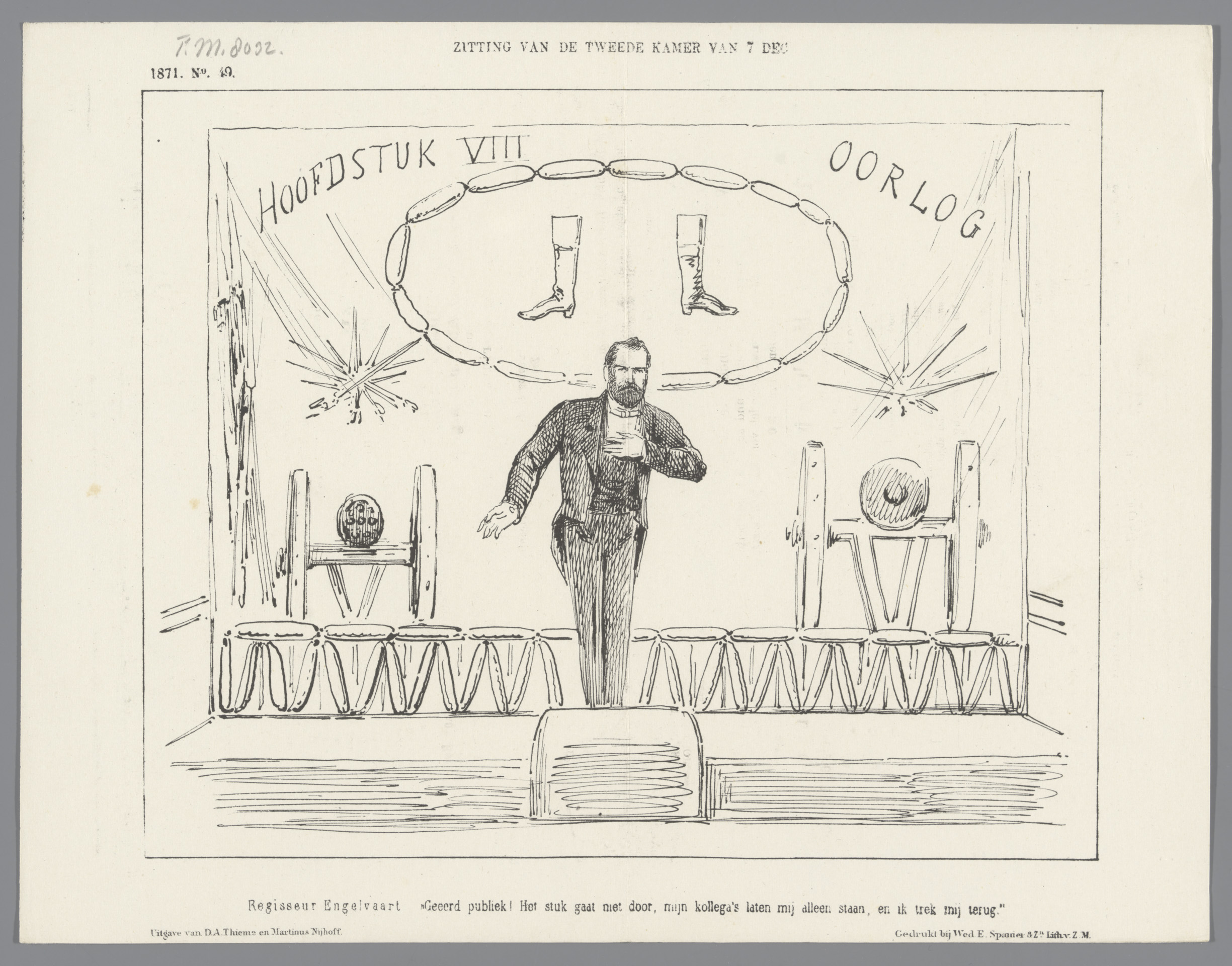 Spotprent op het ontslag van minister Engelvaart, 1871