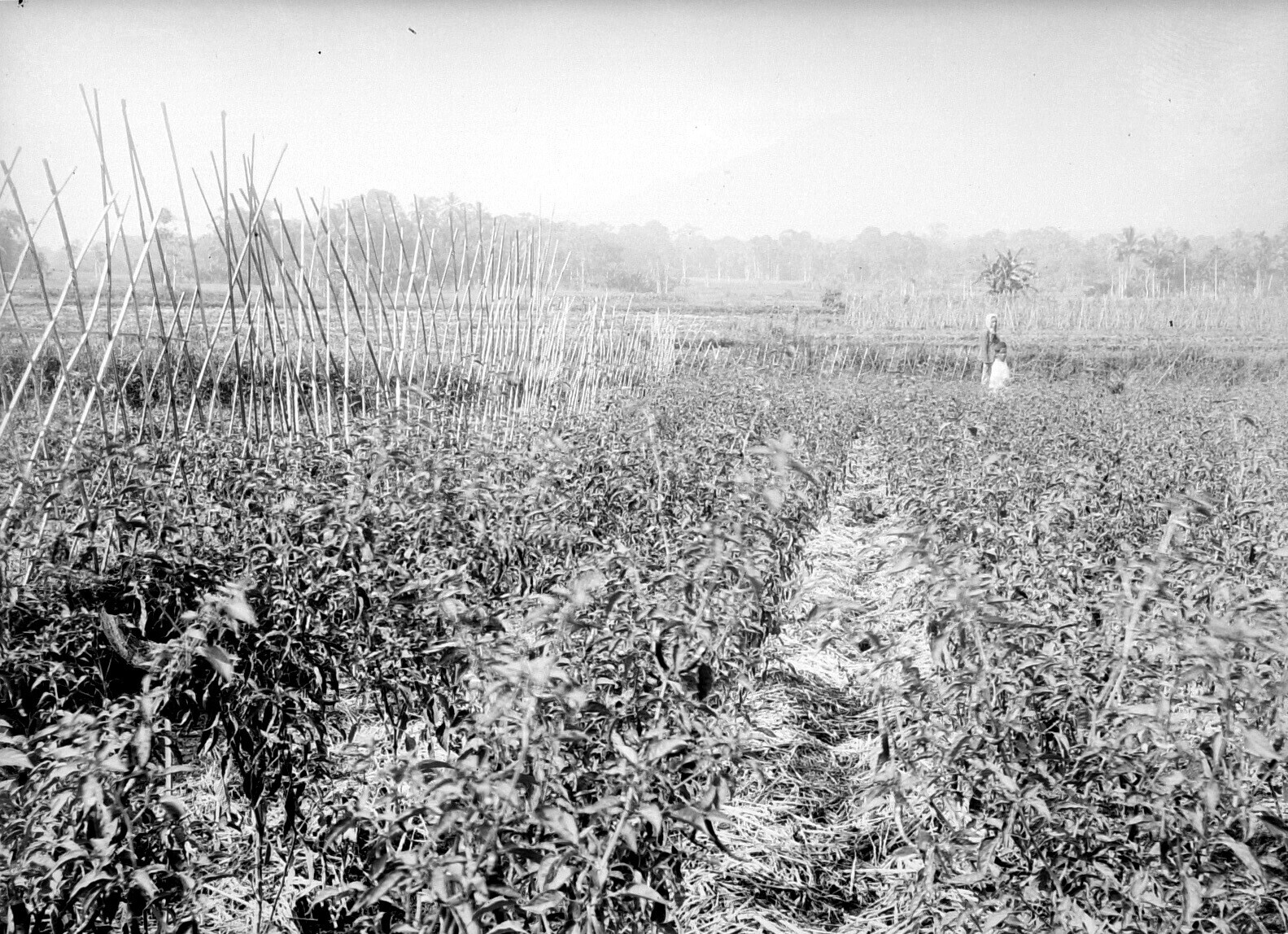 Veld met aanplant van spaanse pepers (Capsicum of lo...