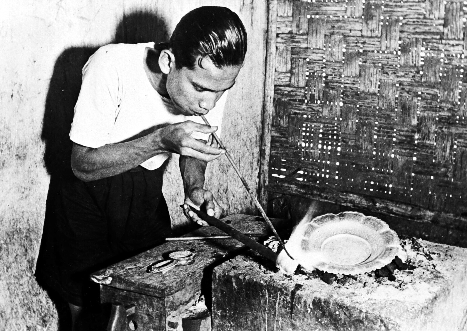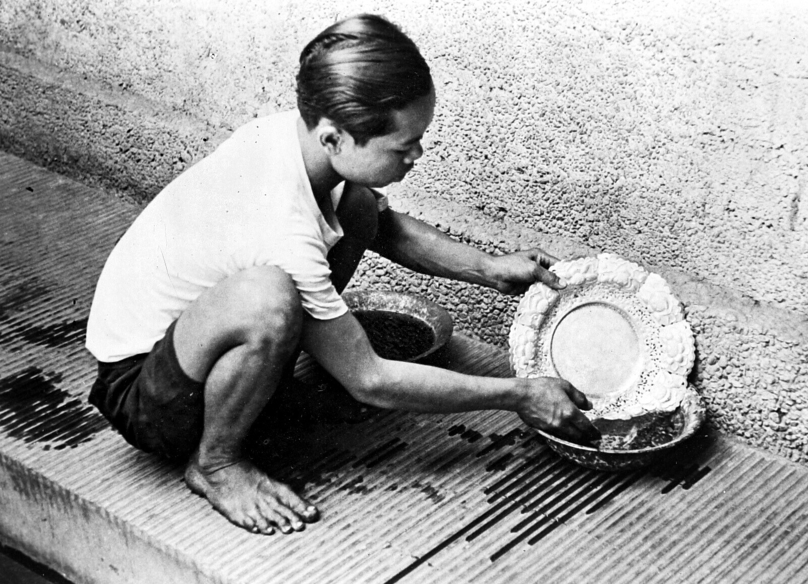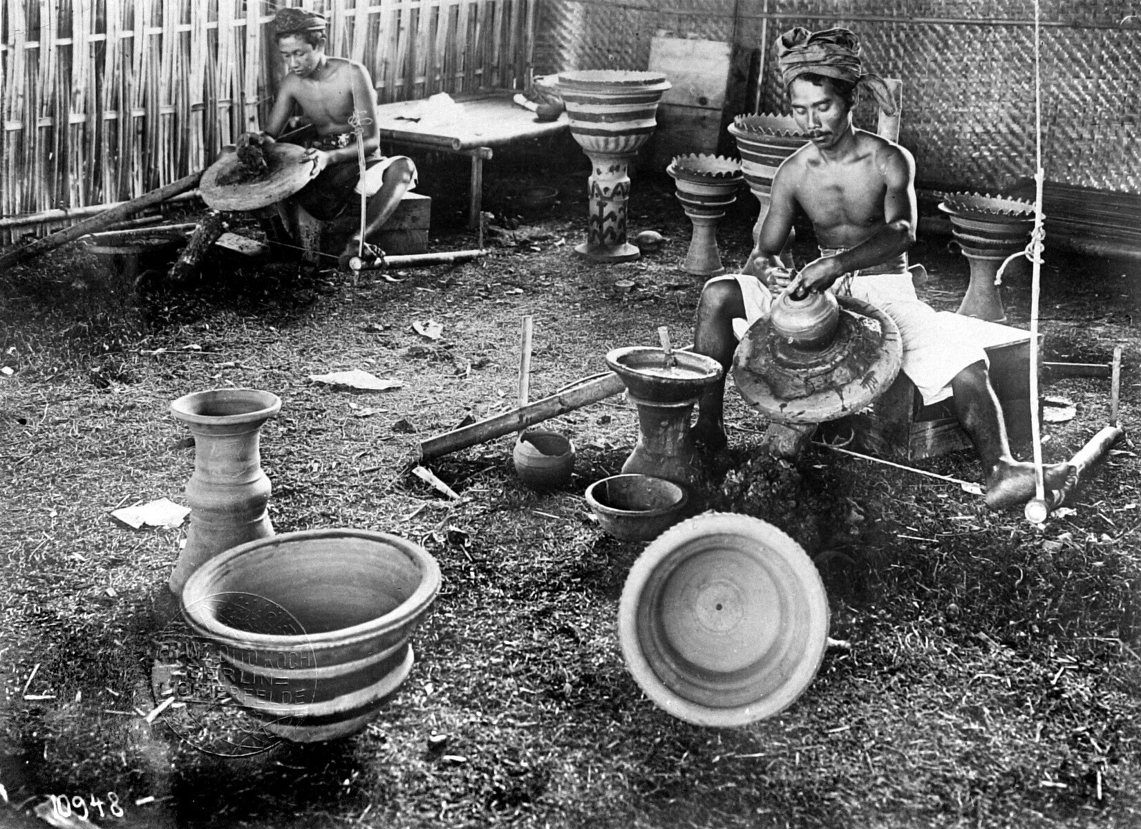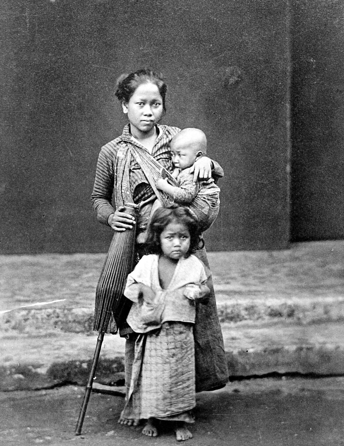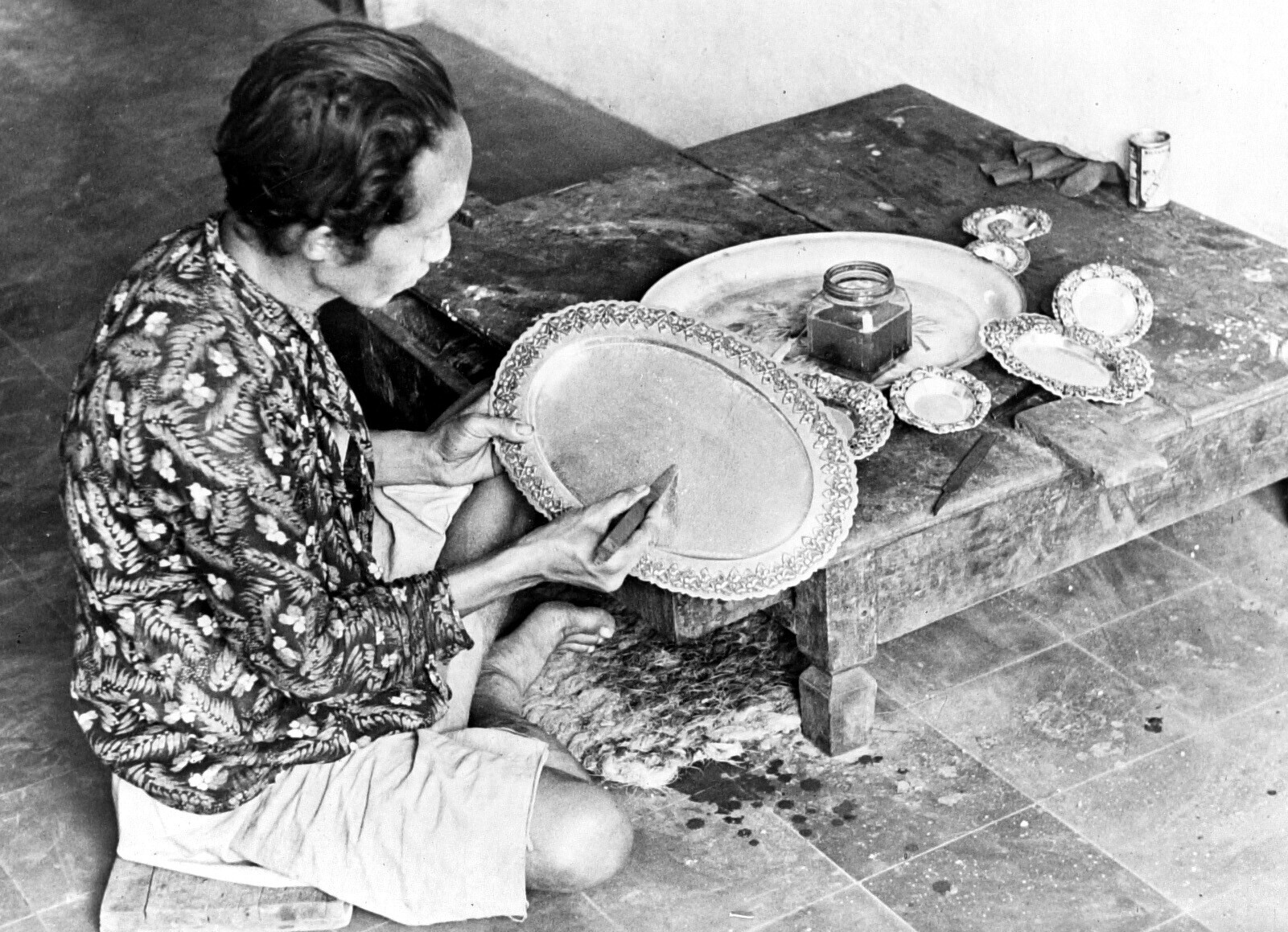 Javaanse zijde-weefsters met spinnewiel en de gareno...