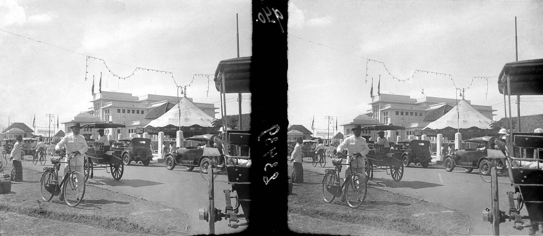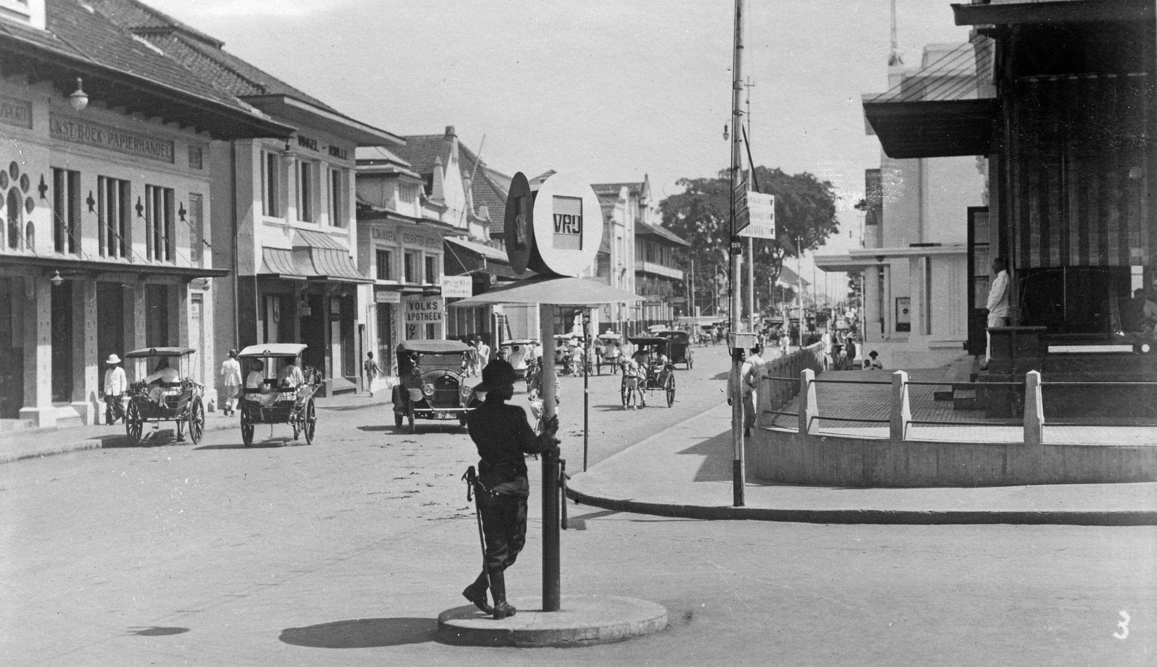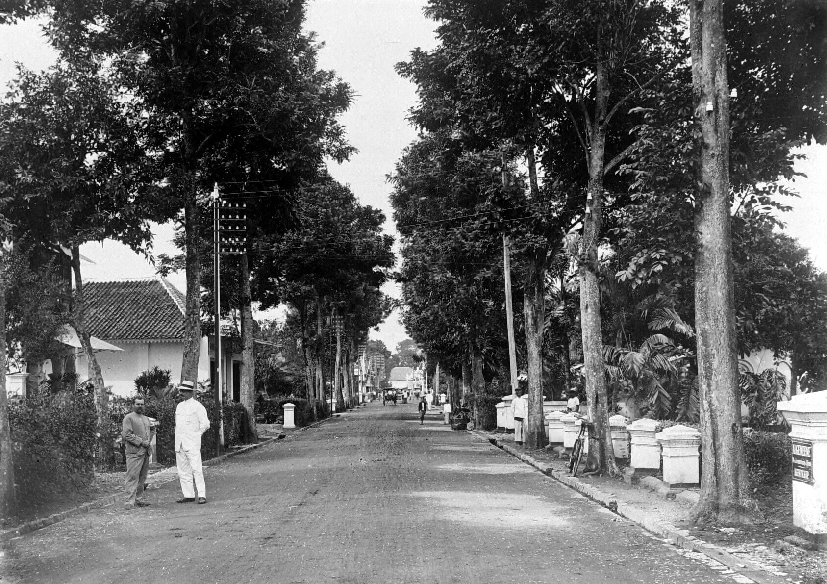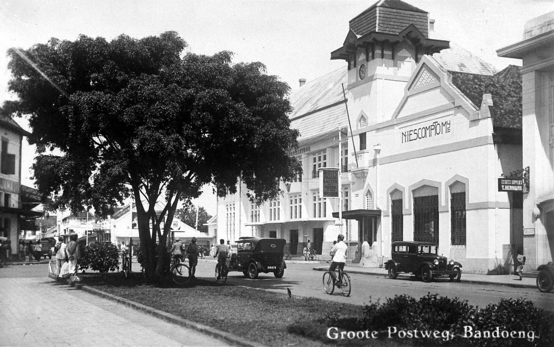 Straatgezicht in Bandoeng met onder meer het pand va...