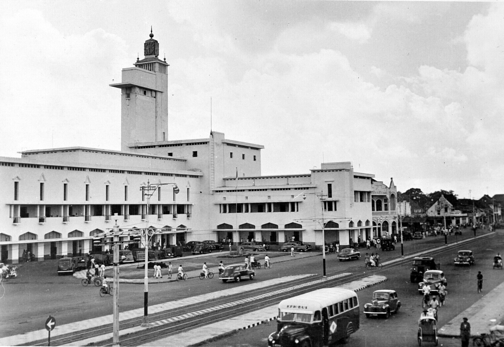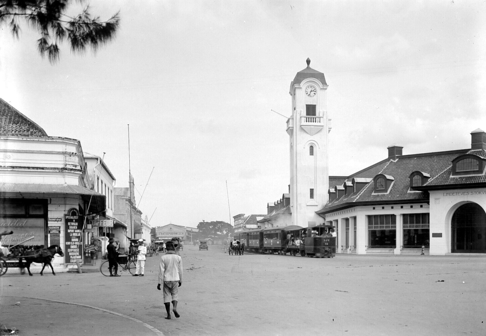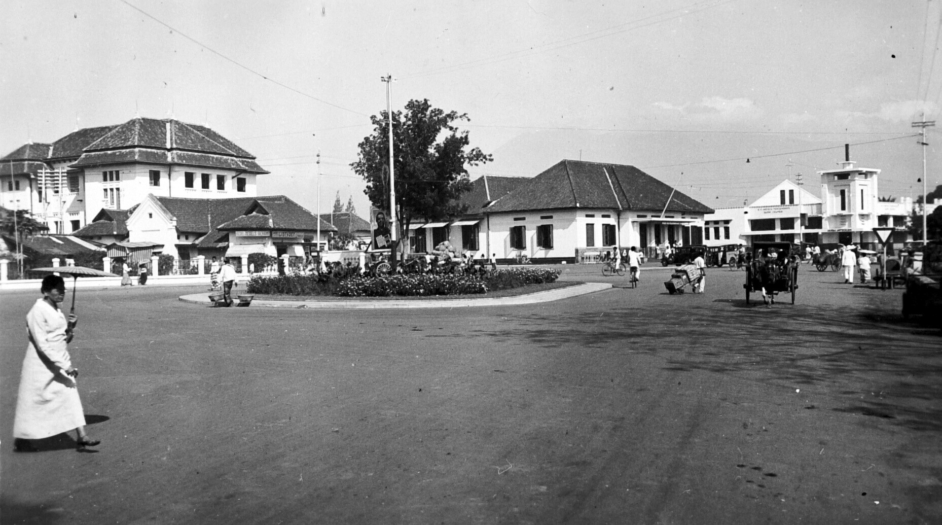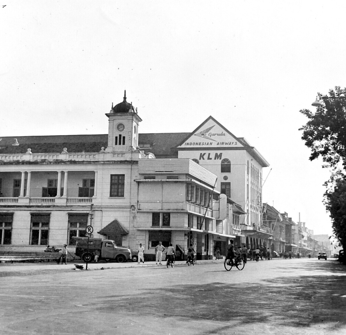 Straatgezicht in Bandoeng met onder meer het pand va...