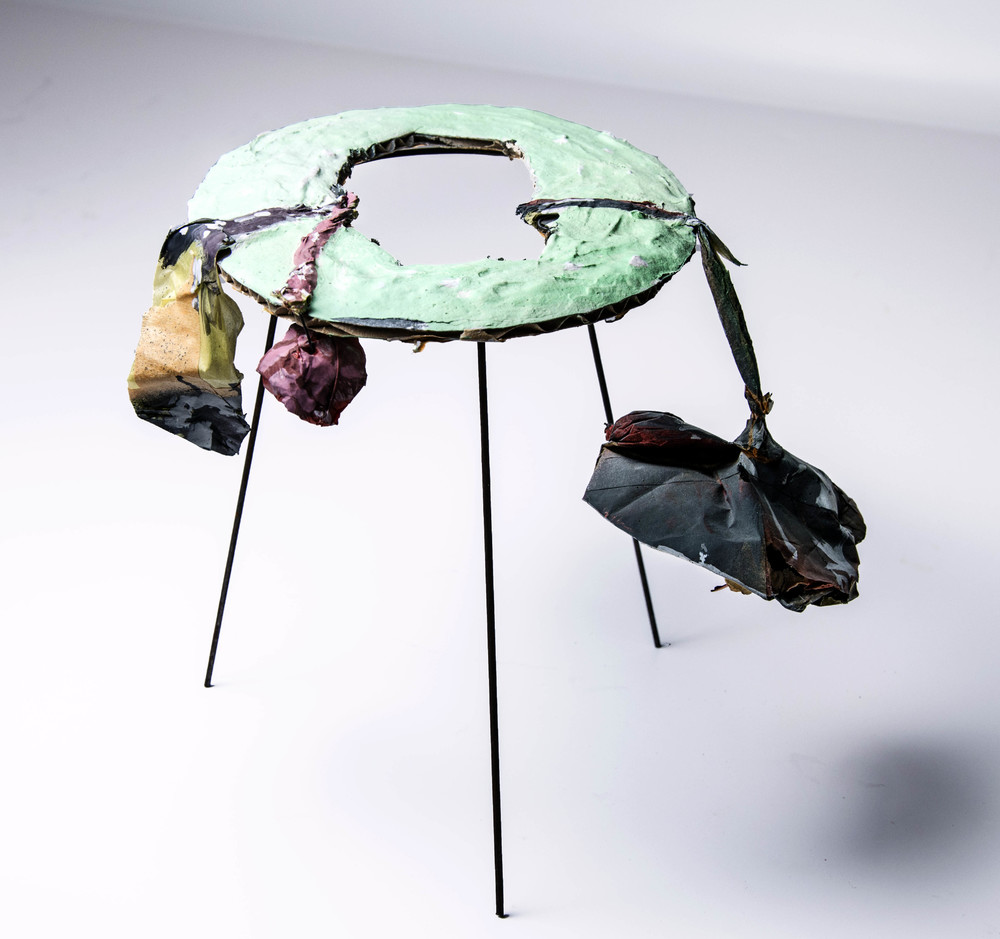 Voorstudie in karton en metaal met bloemen