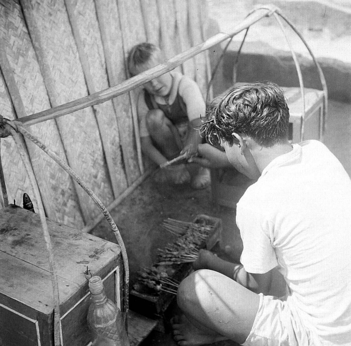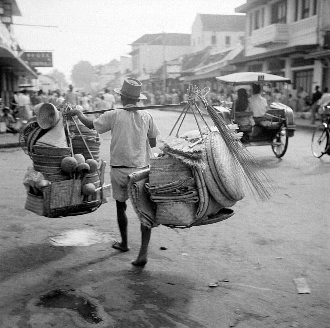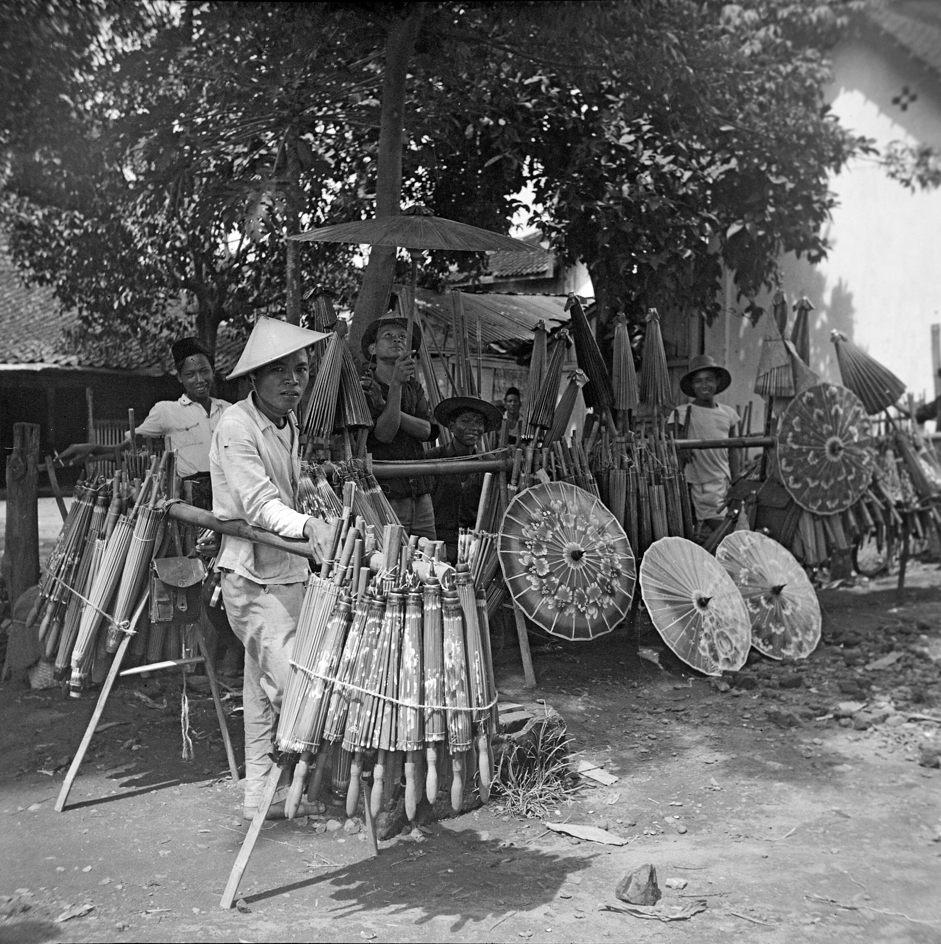 Verkoper van vlechtwerk langs de Djalan Raya te Band...