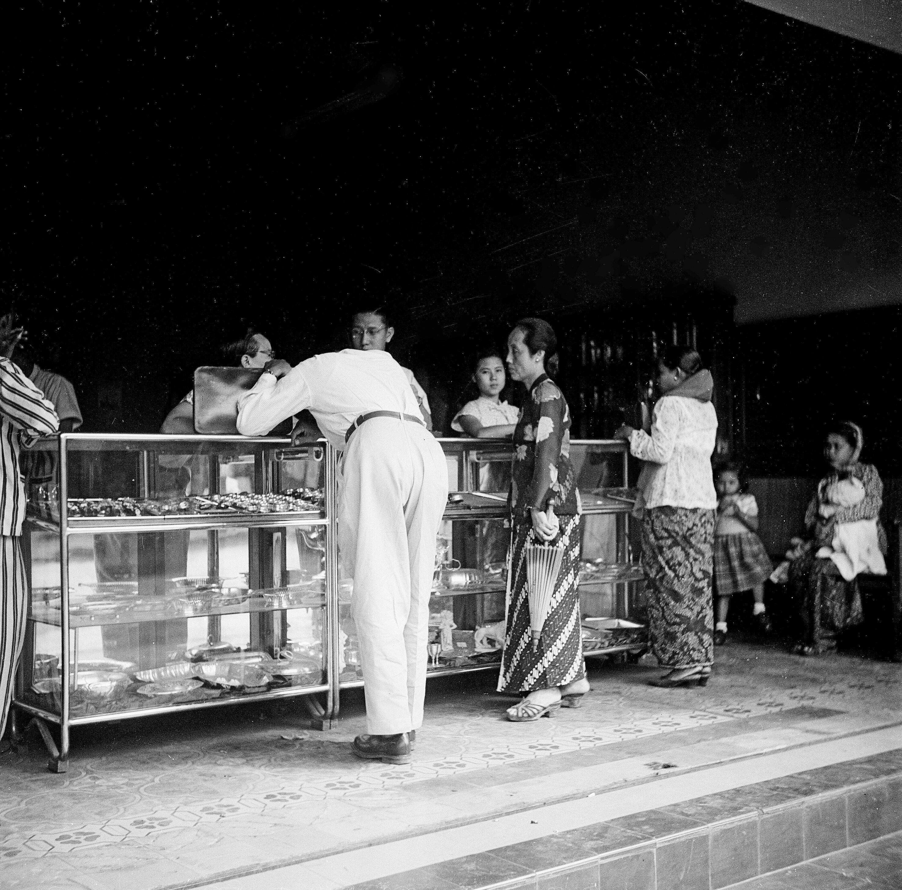 Een goudsmidwinkel op de markt 'Pasar Baru' te Bandu...
