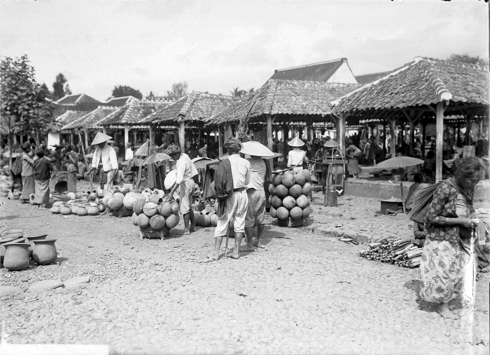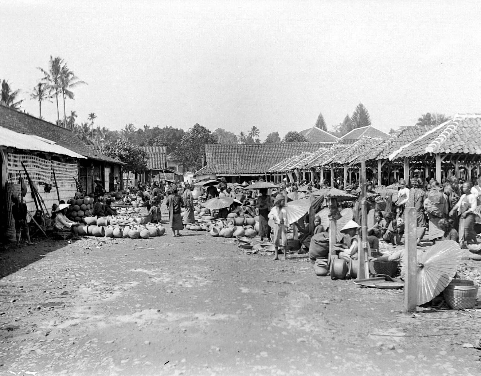 Verkopers met aardewerk op de markt in Salatiga