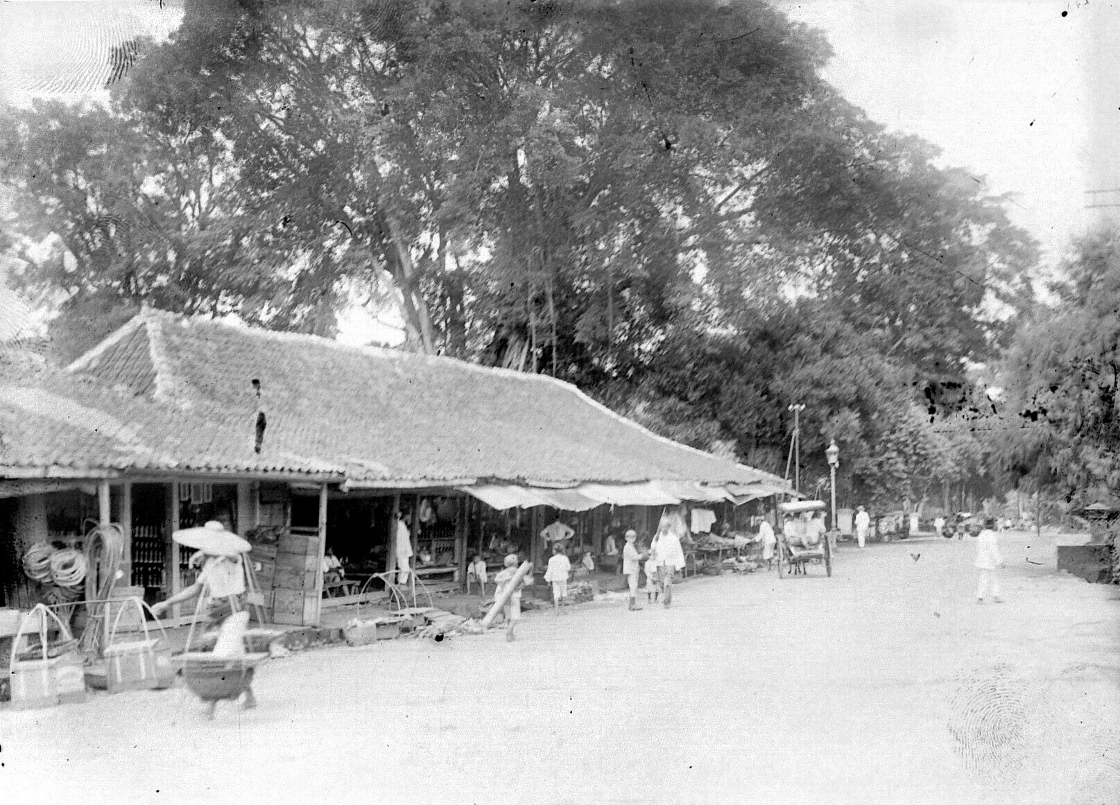Warungs op Panaragan bij de Roode Brug in Buitenzorg