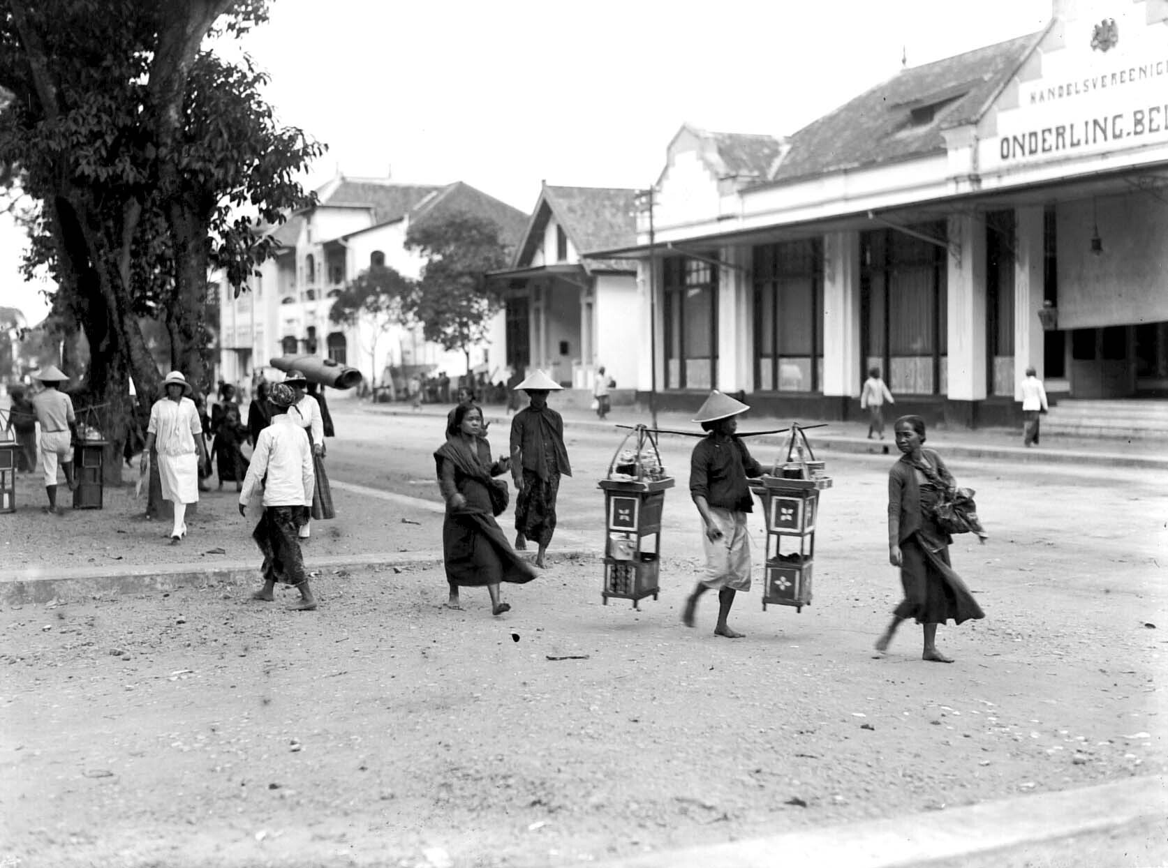Markt (passar) op straat te Batavia, Java