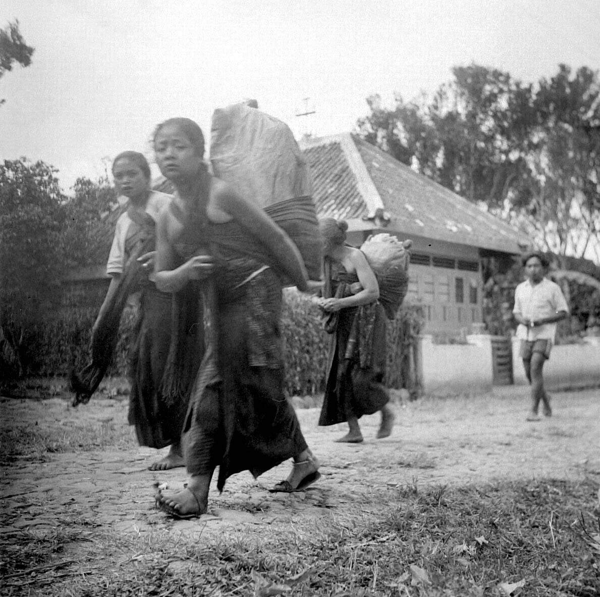 Vrouwen opweg naar de markt (pasar) te Plaosan bij S...