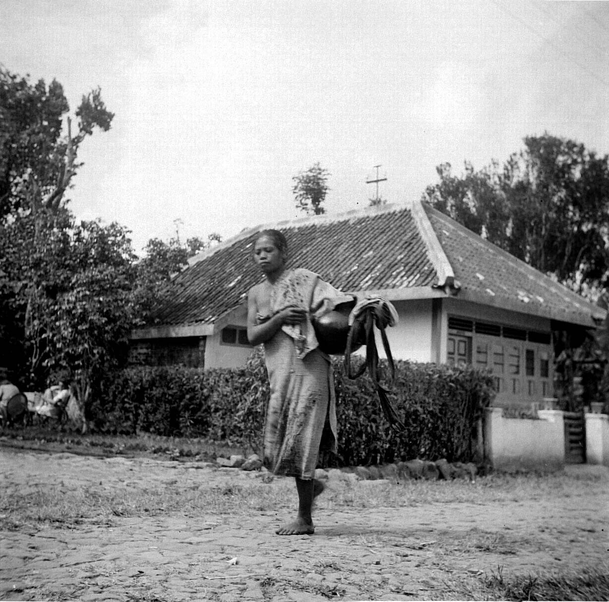Een vrouw met een waterkruik bij Saradan, Madiun, Oo...