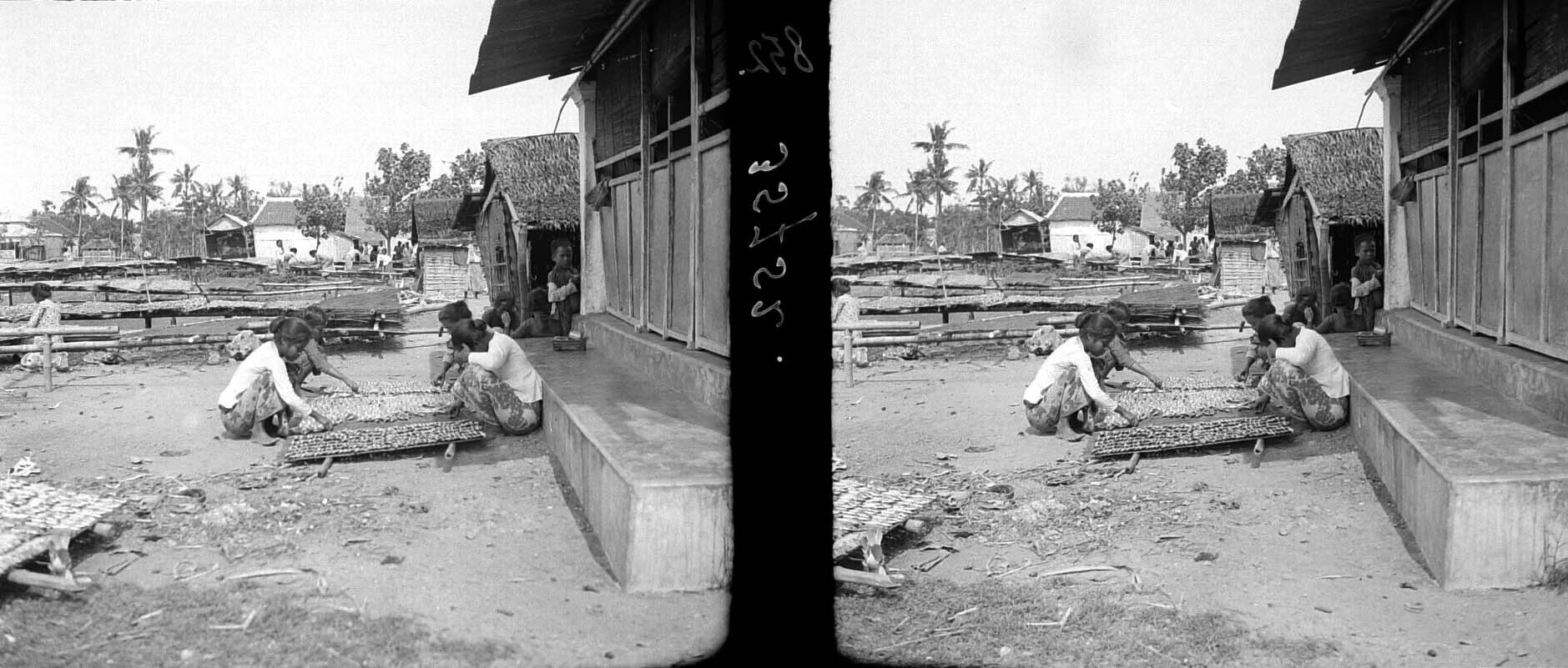 Een kroepoekbakker langs de weg naar Bojolali, Java
