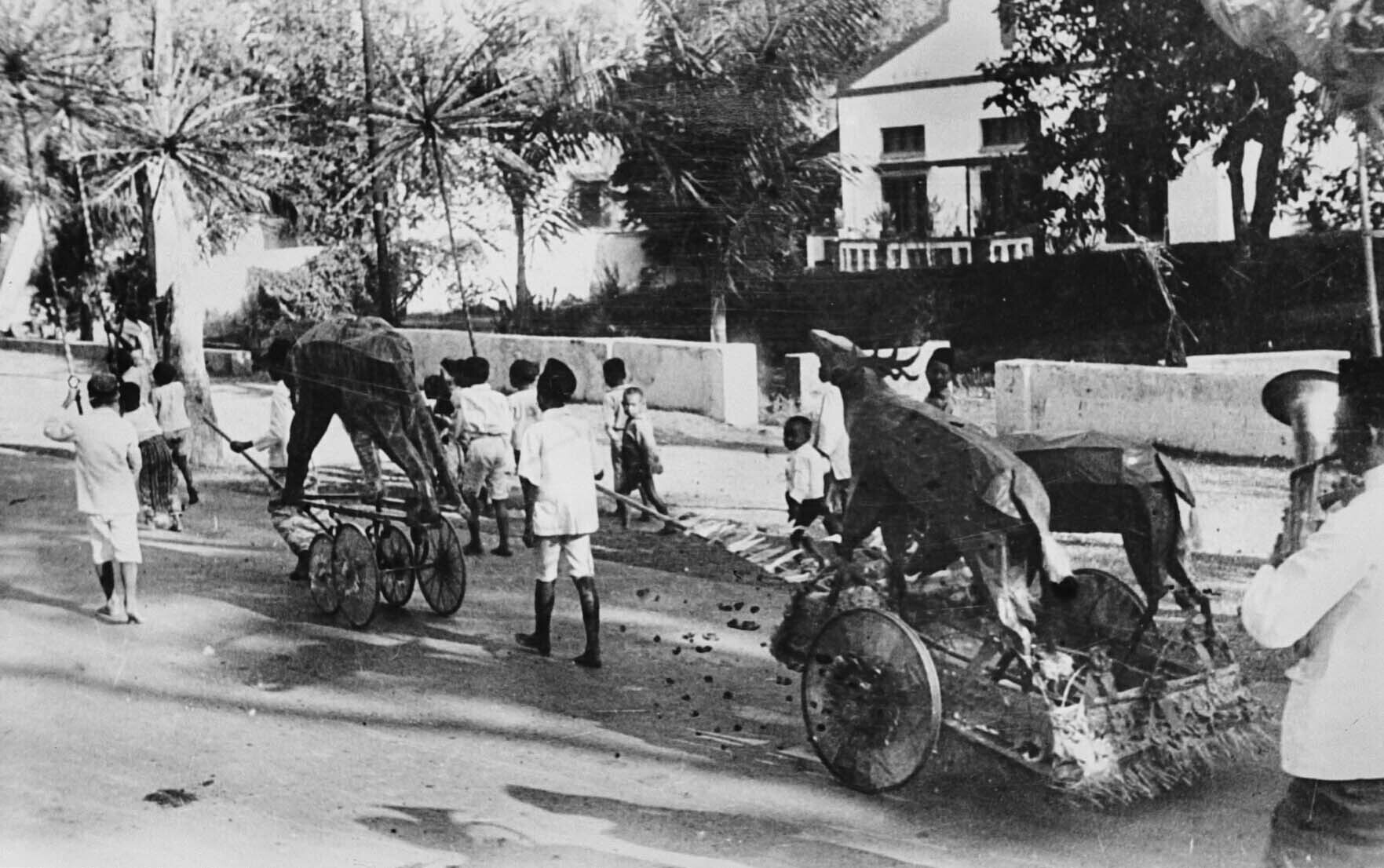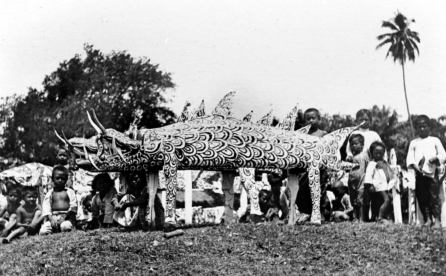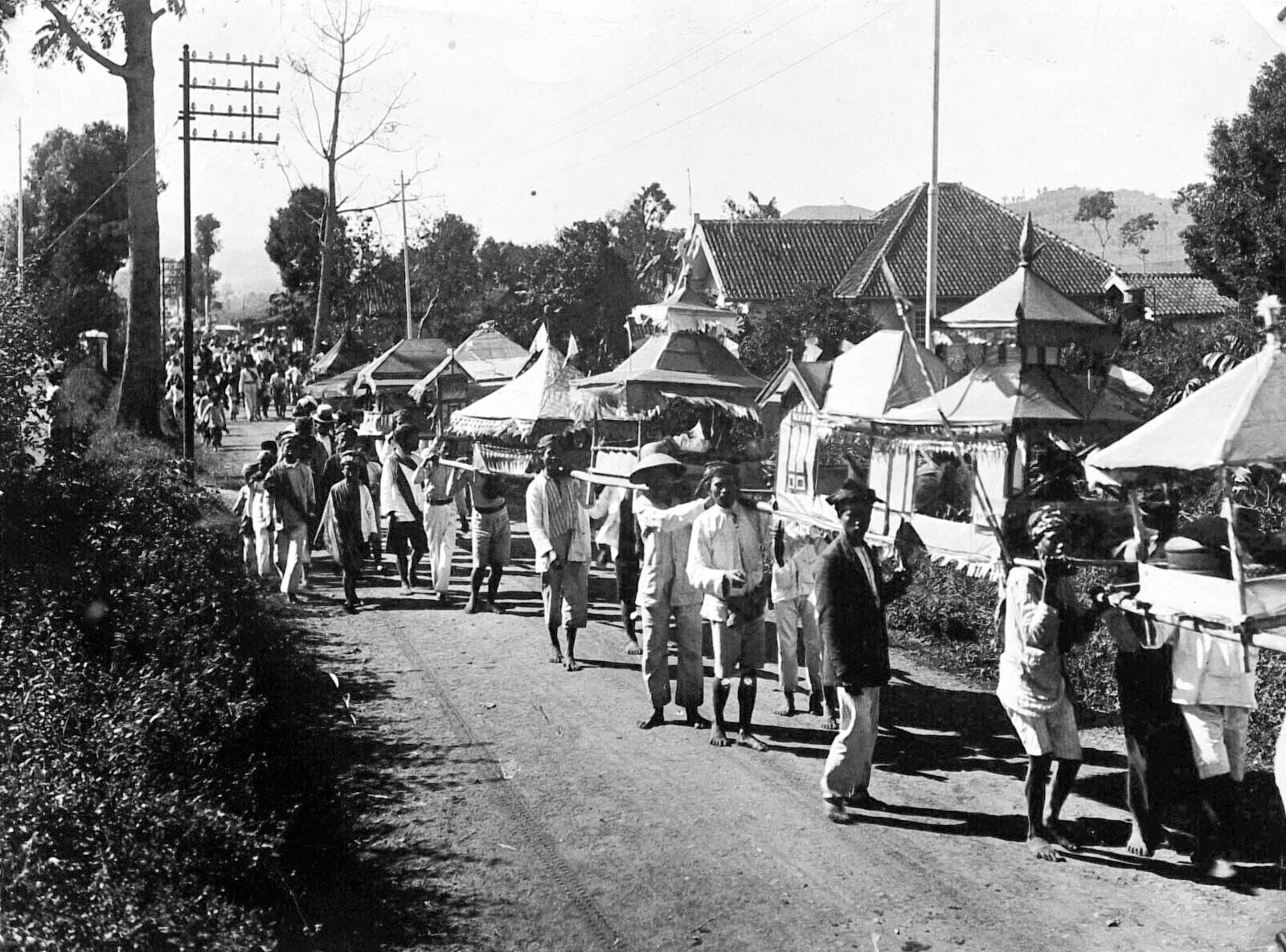 Een Chinese begrafenisstoet te Salatiga, Midden-Java
