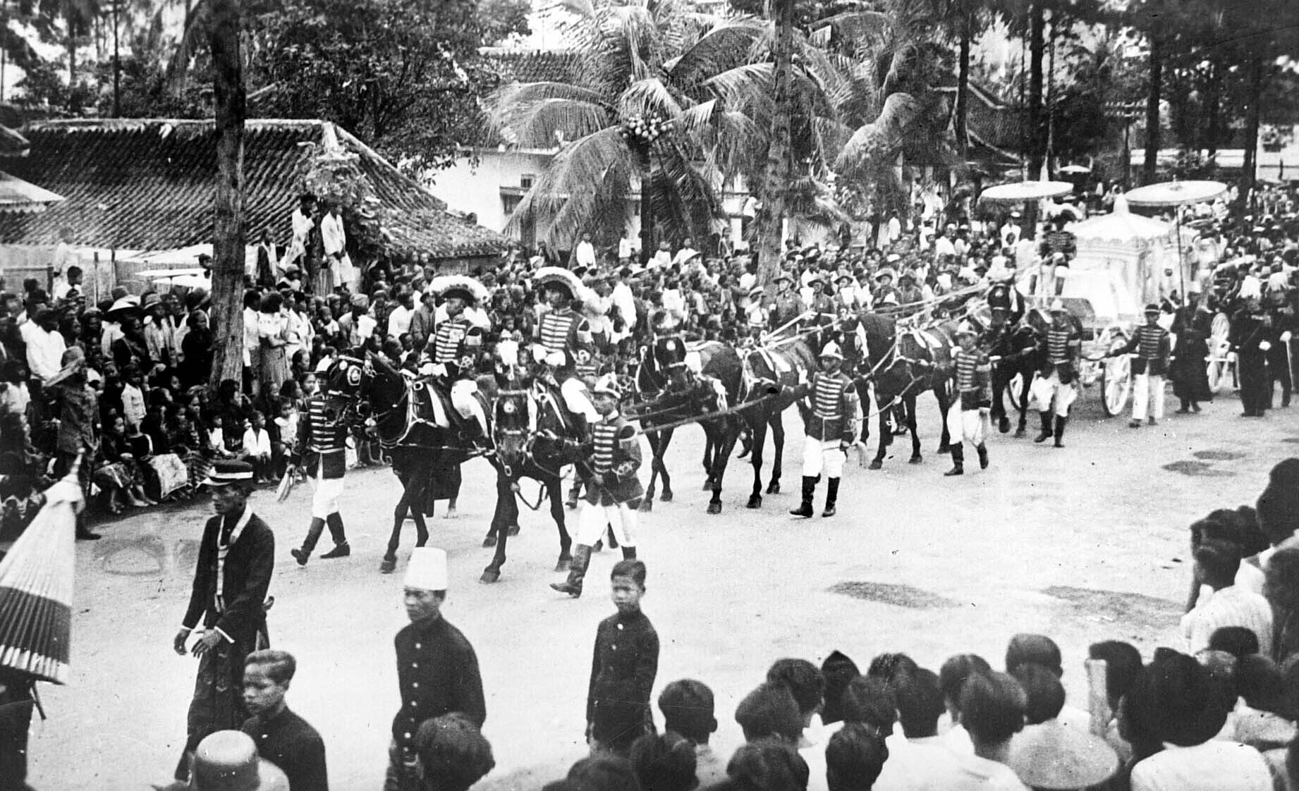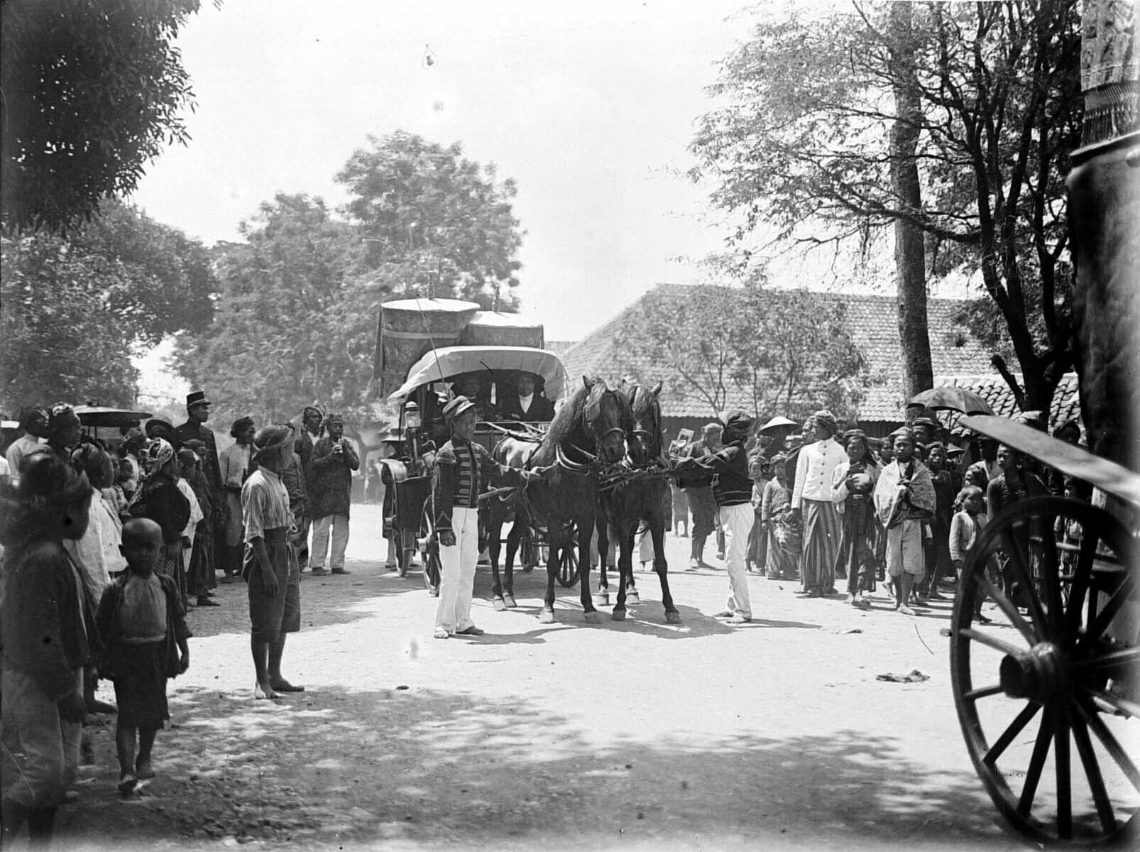 Feestelijke optocht tijdens een Javaanse bruiloft te...