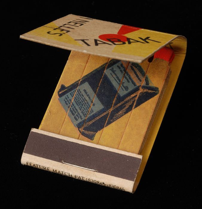 Luciferdoosje met opdrukken van "Van Nelle" en "Send...