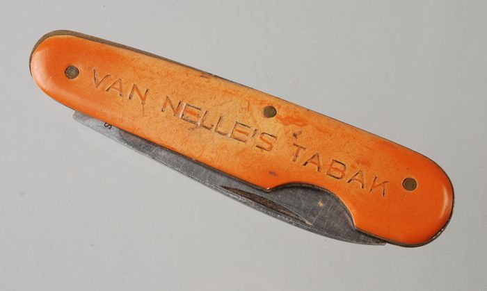 Zakmes met oranje heft en reclame "Van Nelle"
