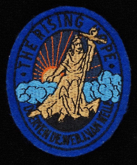 Stoffen embleem van Van Nelle met beeldmerk "the Ris...