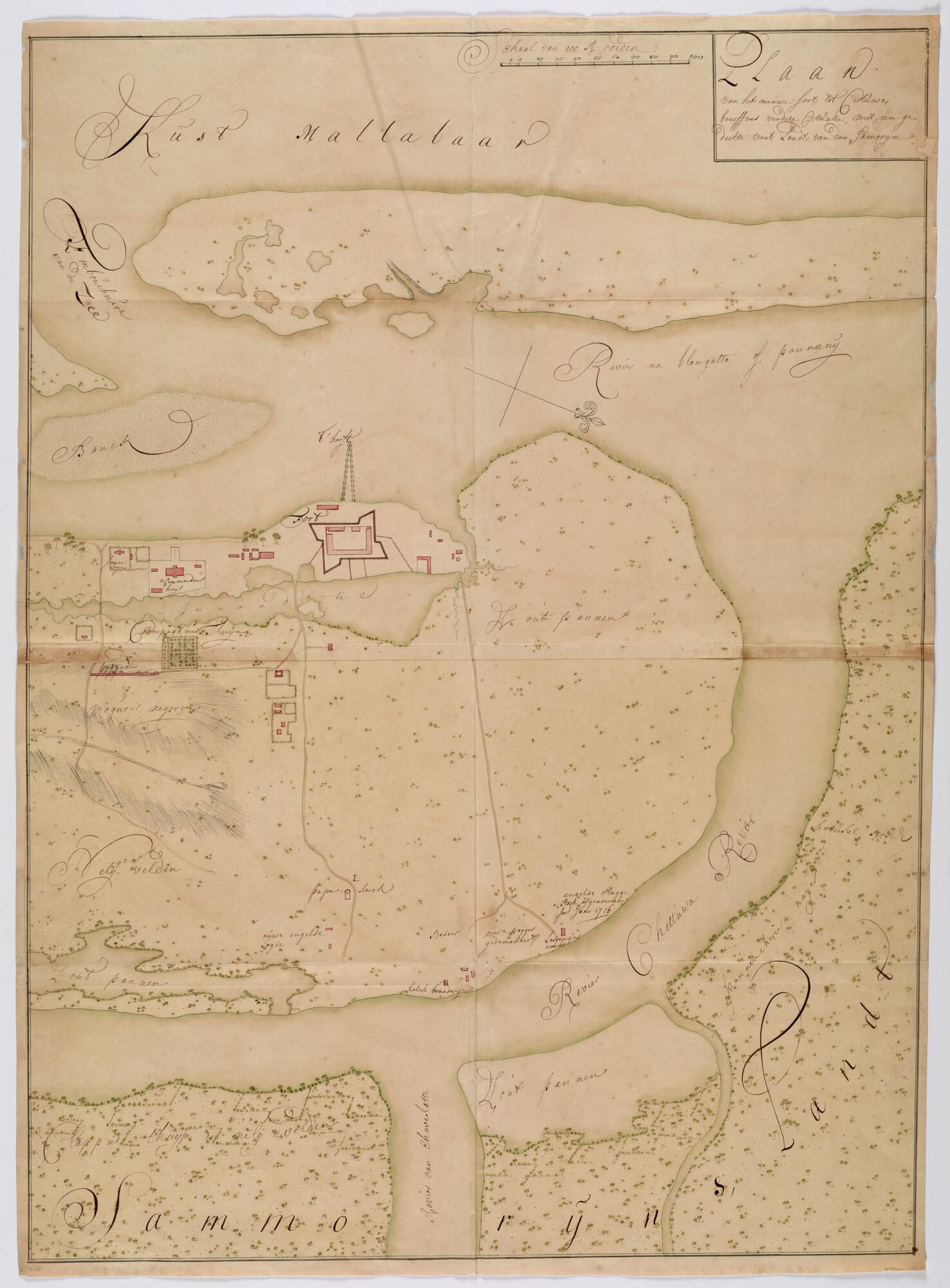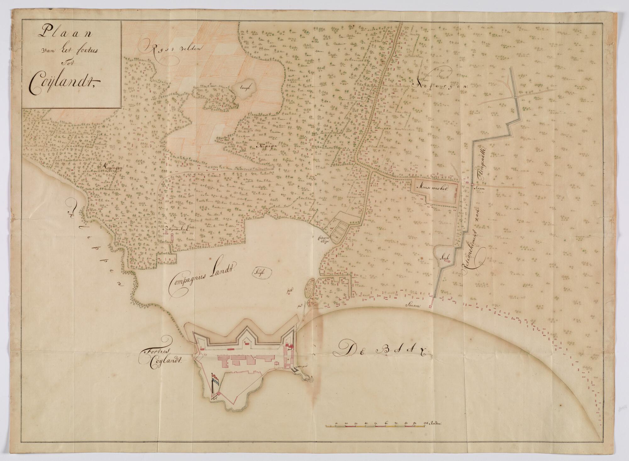 Gekleurde handschriftkaart van fort Coijlandt in Mal...