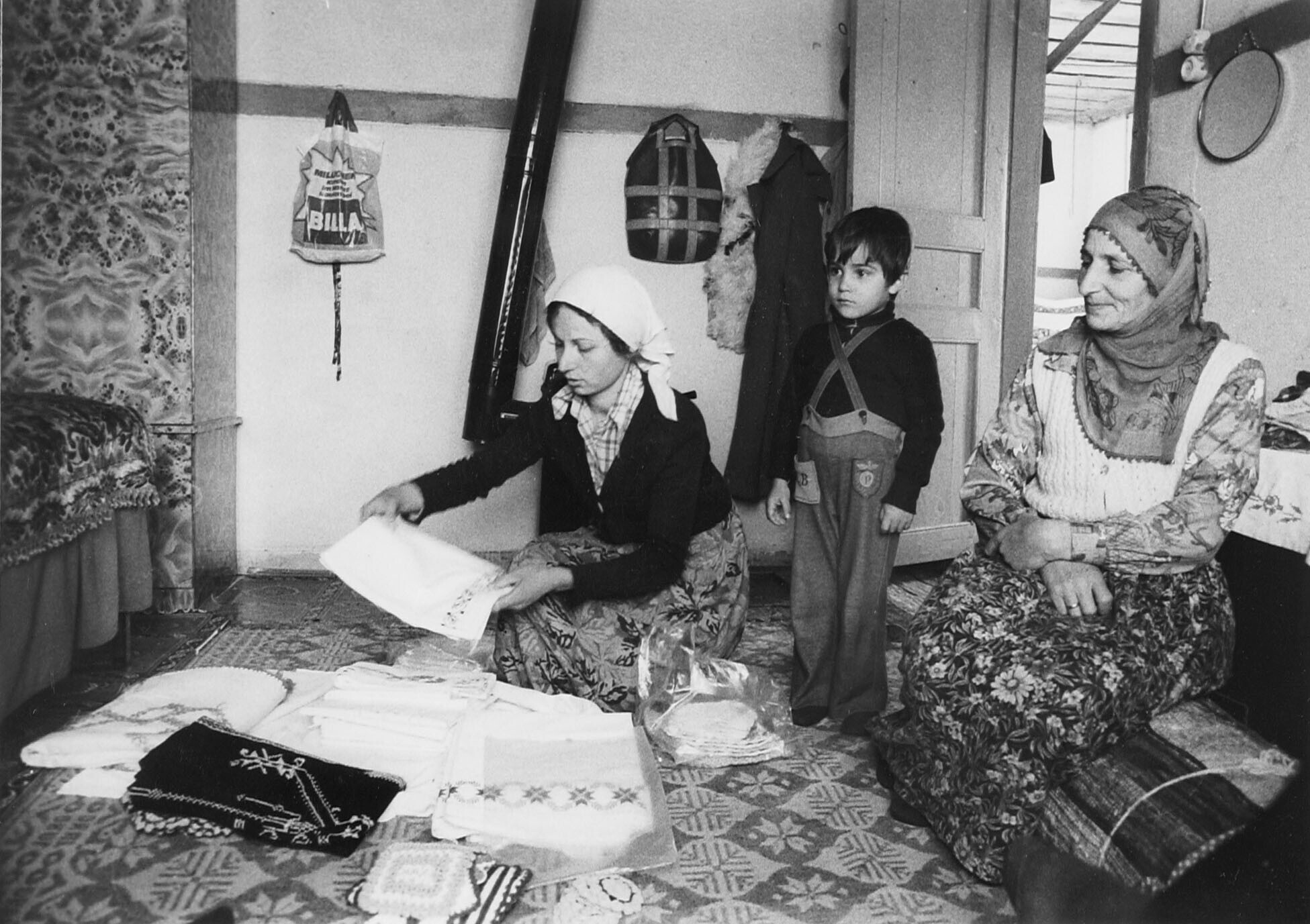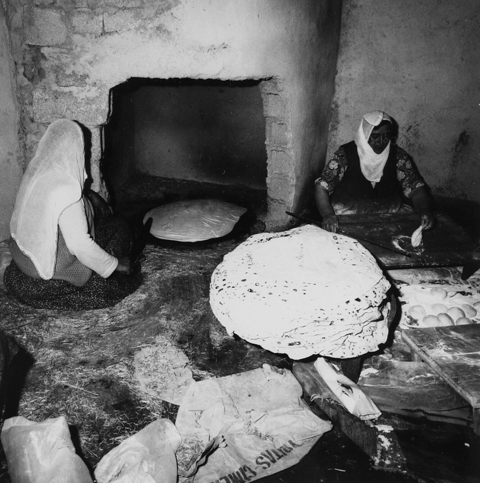 Het bakken van dunne broden door dorpsvrouwen,de vro...