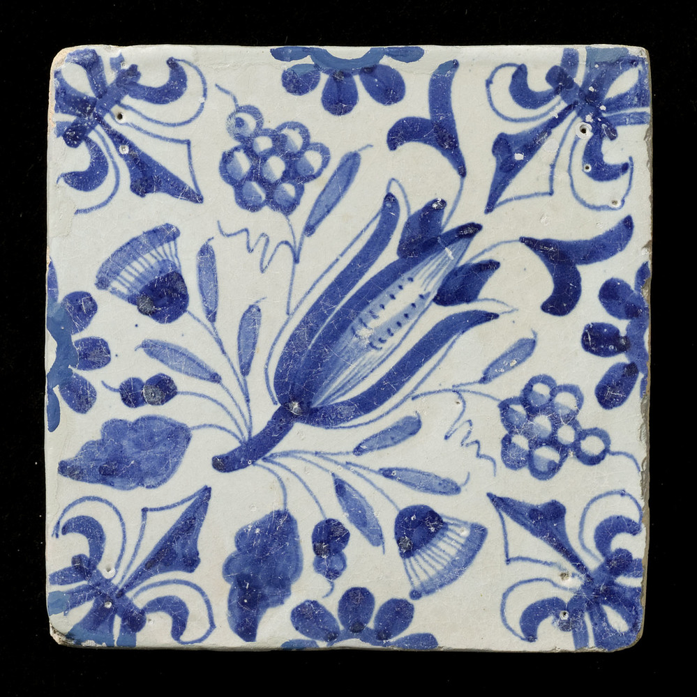 tegel van aardewerk met tinglazuur, voorstellende: o...