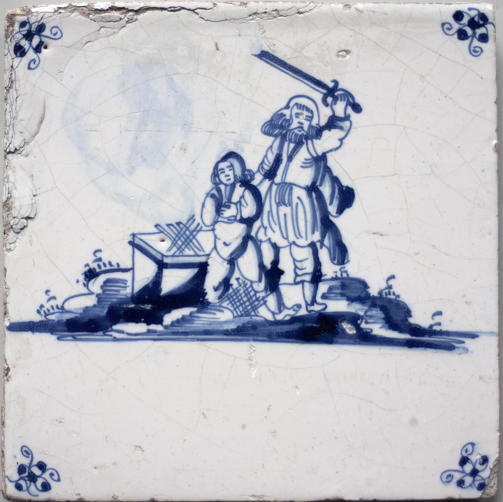 tegel van keramiek met tinglazuur, voorstellende: Ab...