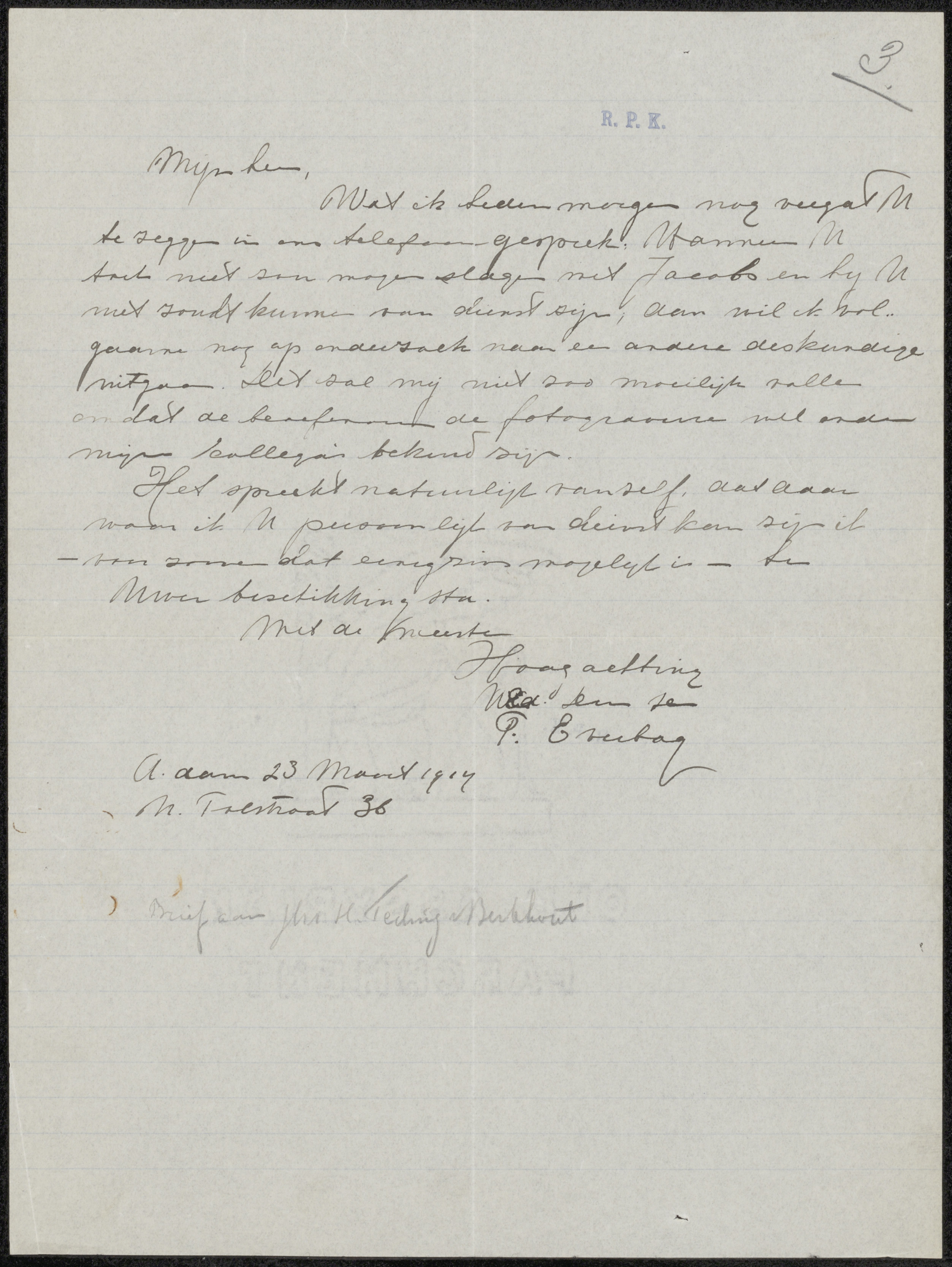 Brief aan jonkheer Hendrik Teding van Berkhout (1879...
