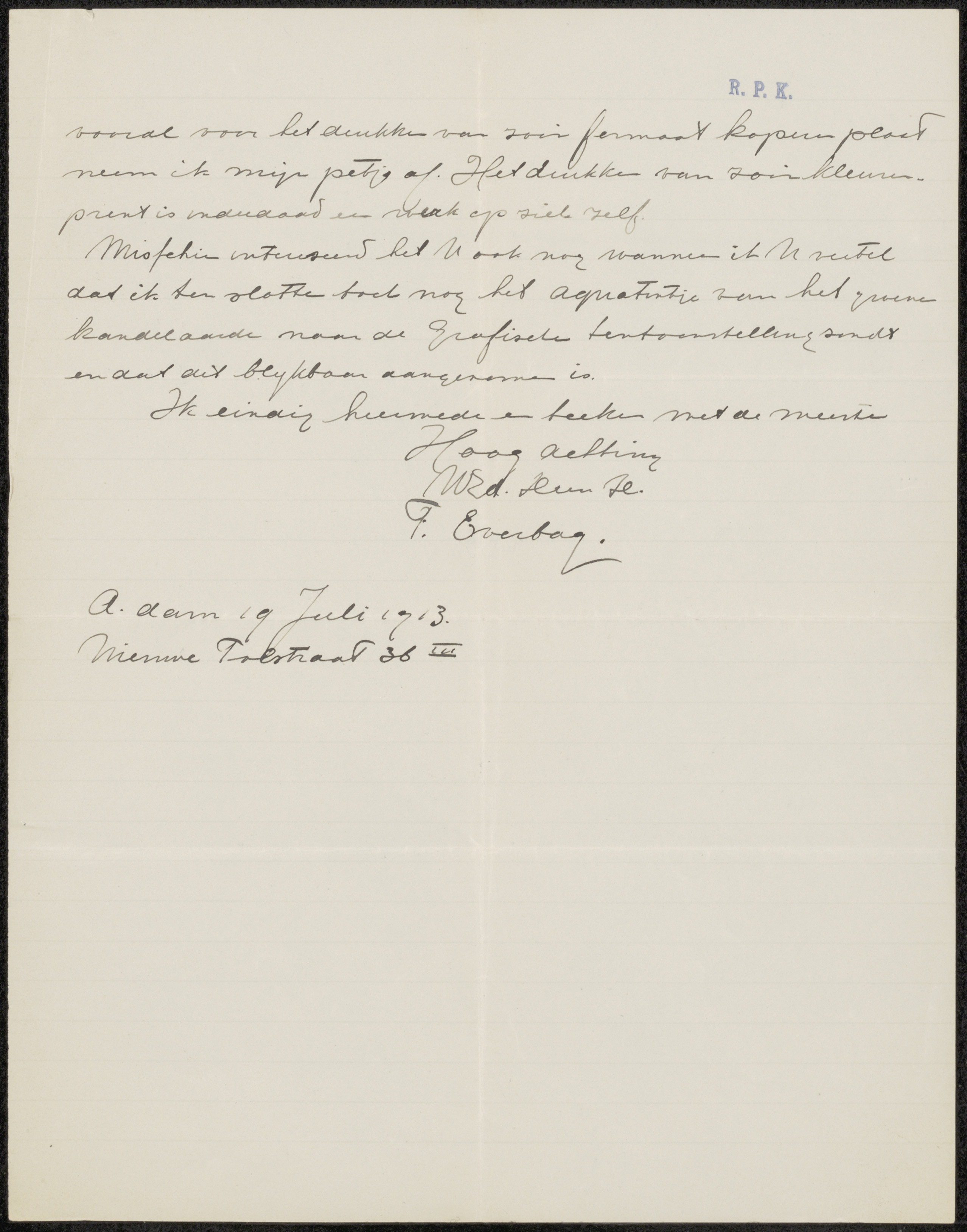 Brief aan Pieter Haverkorn van Rijsewijk