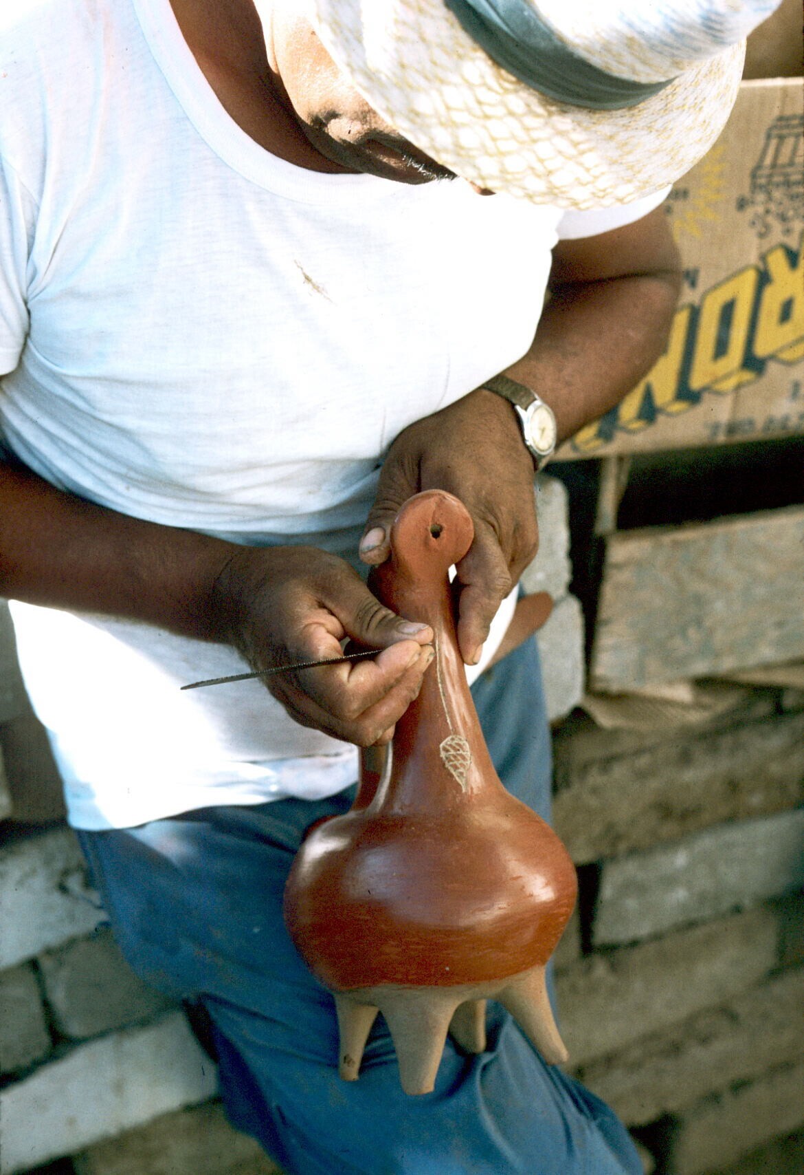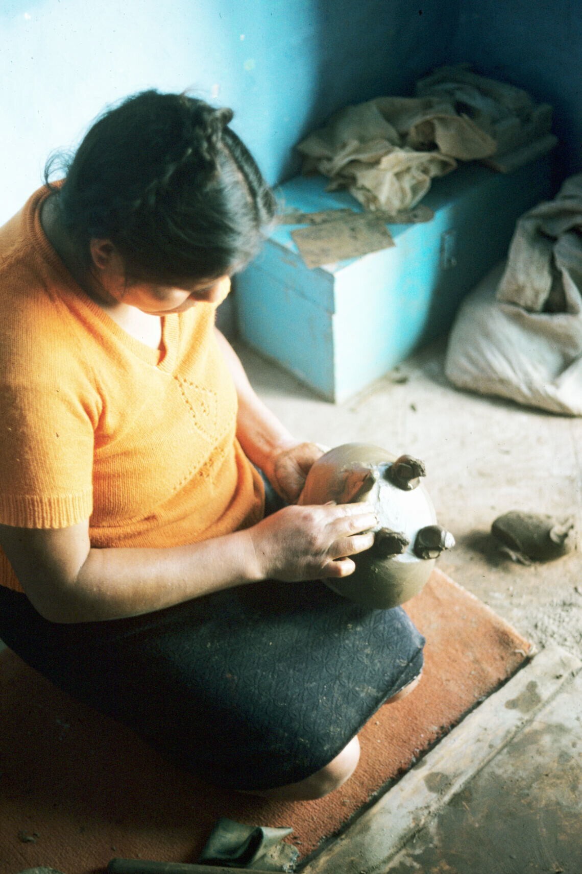 pottenbakster María Soto de Pérez maakt "pato" (eend...