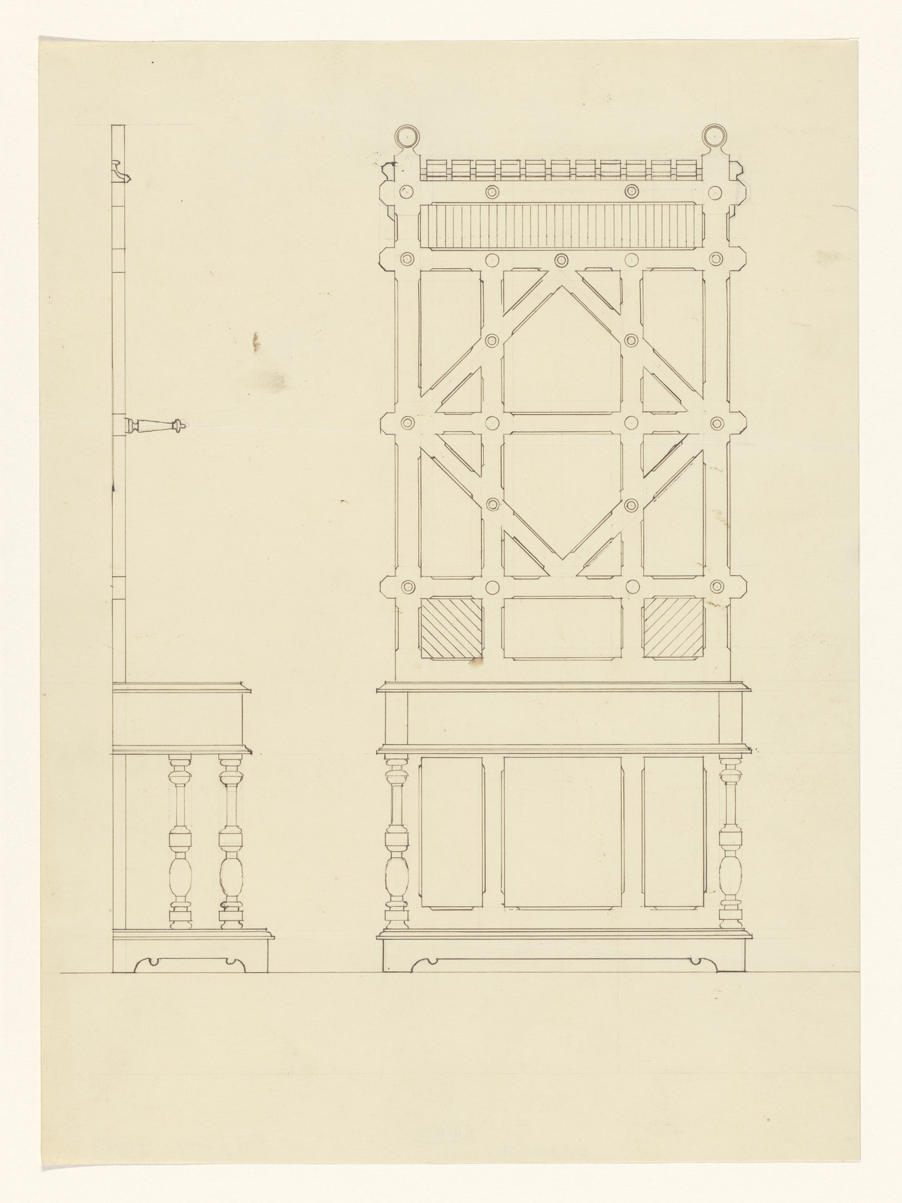Ontwerp voor een verstelbaar haardscherm, voor en zi...