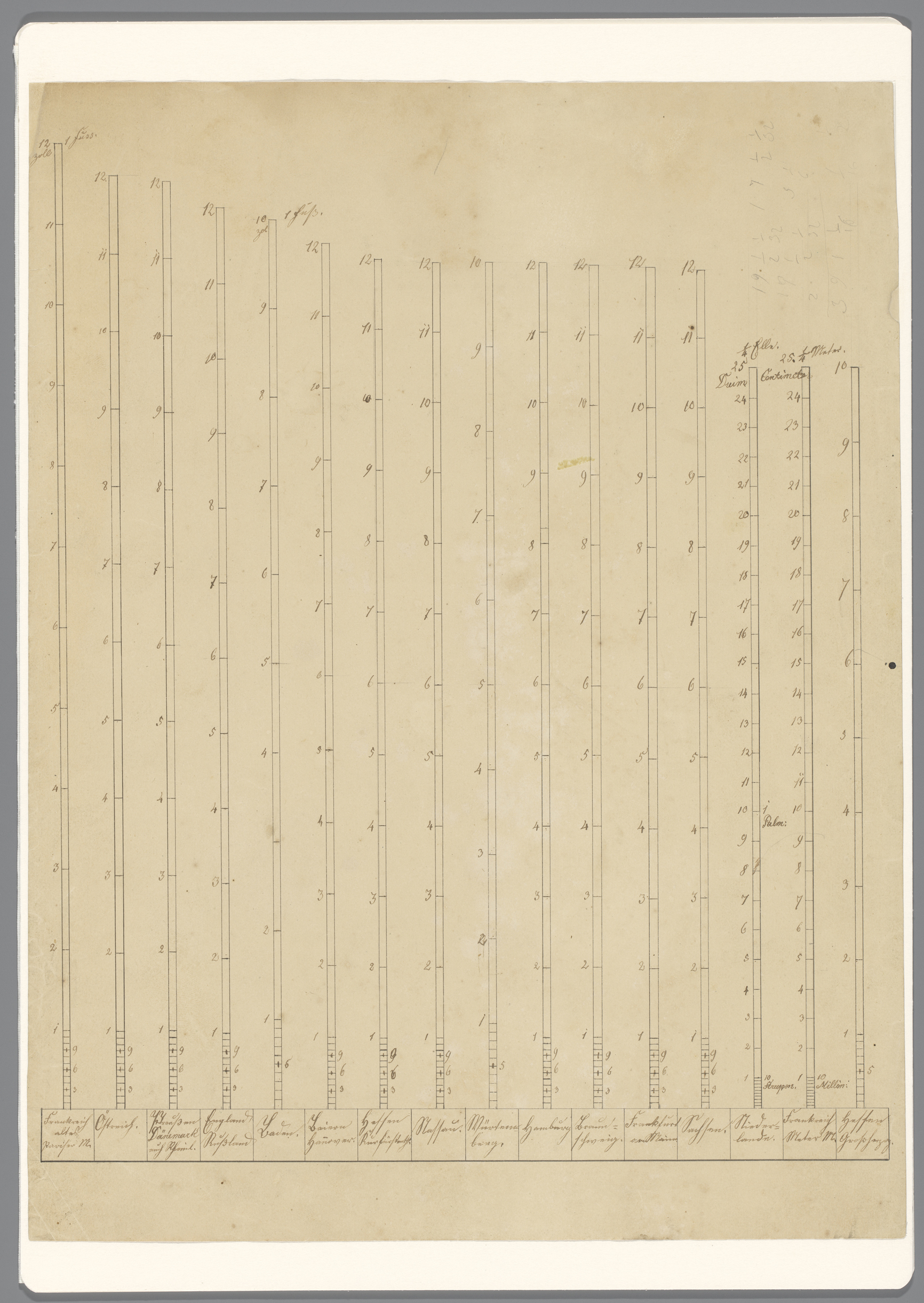 Tabel van 16 verschillende voetmaten