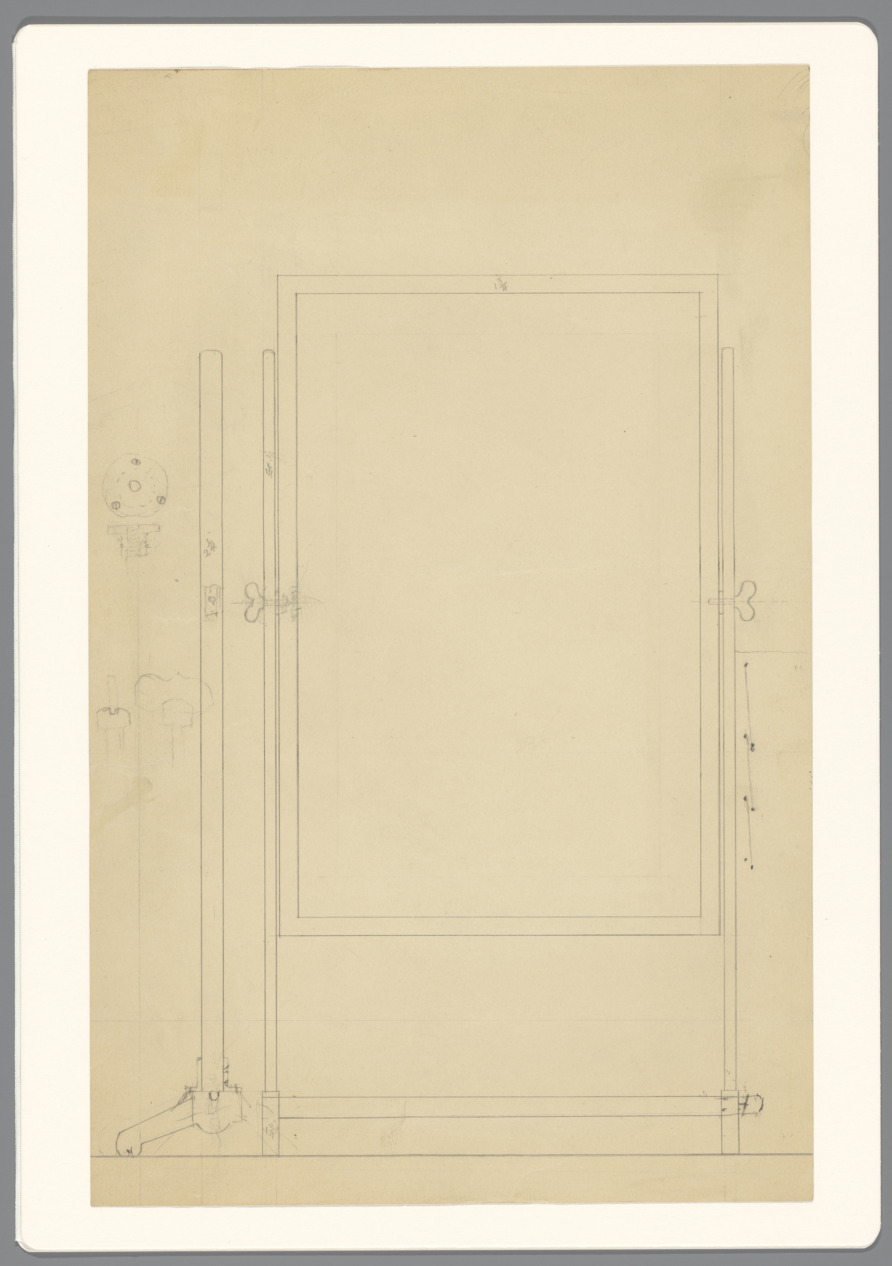 Ontwerp voor een verstelbare standaard, twee aanzich...